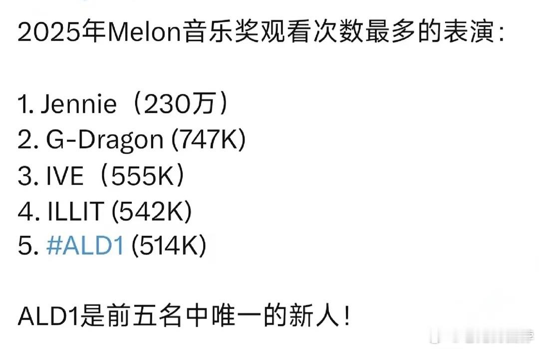 MMA观看次数最多的表演艺人组合Jennie 权志龙 IVE illit ALD1