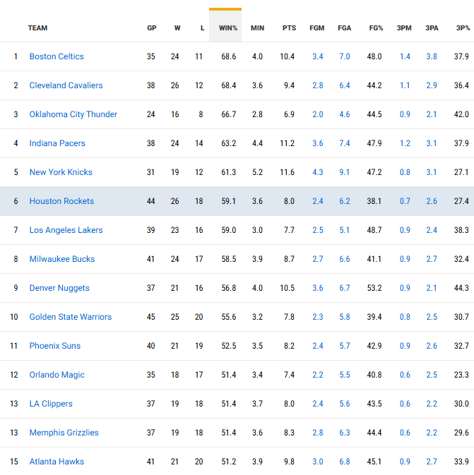 目前,火箭战绩为17胜9负跌至西部第六,其中关键时刻战绩6胜8负位列联盟第20位;