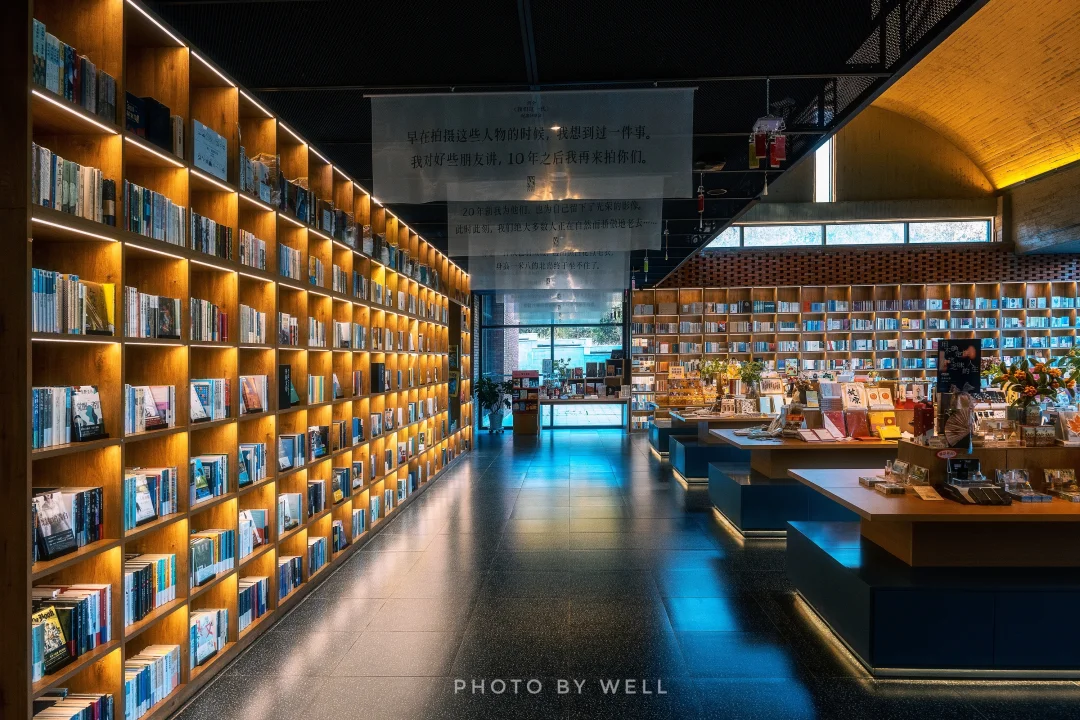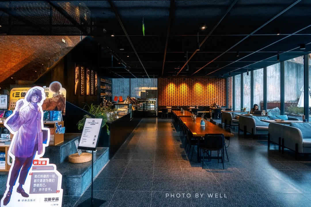 书店内部设计充满工业风与文艺气息的交融。一层是书籍区域和文创产品区,还有咖啡厅供读者小憩;二层是舒适的阅读空间,最引人注目的是连接一二层的整面书墙,成为店内最具特色的景观。