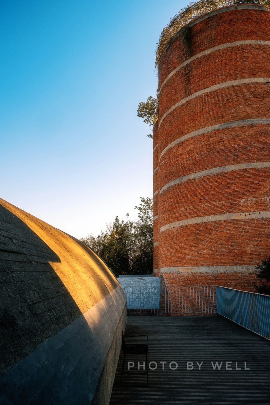 原有的砖窑结构被完整保留,读者可以走进筒体,仰望顶端小小的出口,感受独特的视觉体验。店家还巧妙利用原有结构,在台阶处布置诗句,处处体现着“先锋”特色。