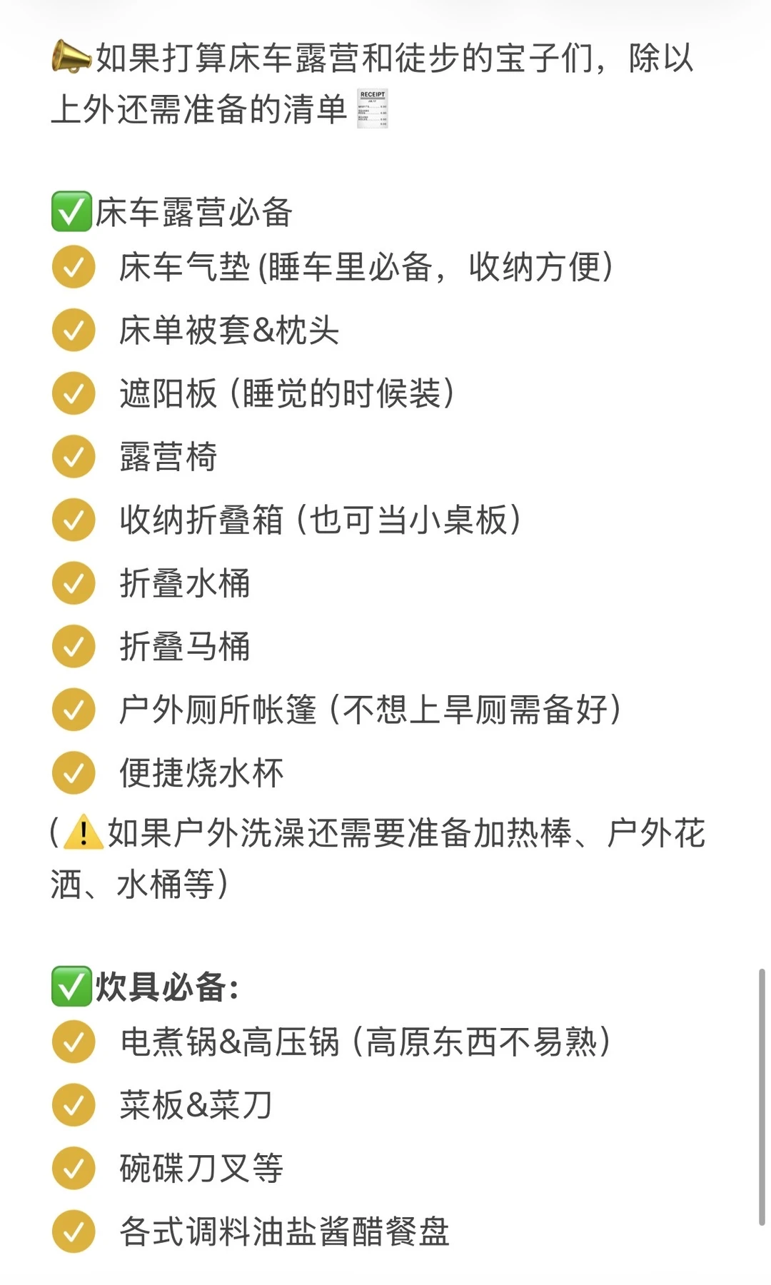 📣如果打算床车露营和徒步的宝子们,除以上外还需准备的清单🧾