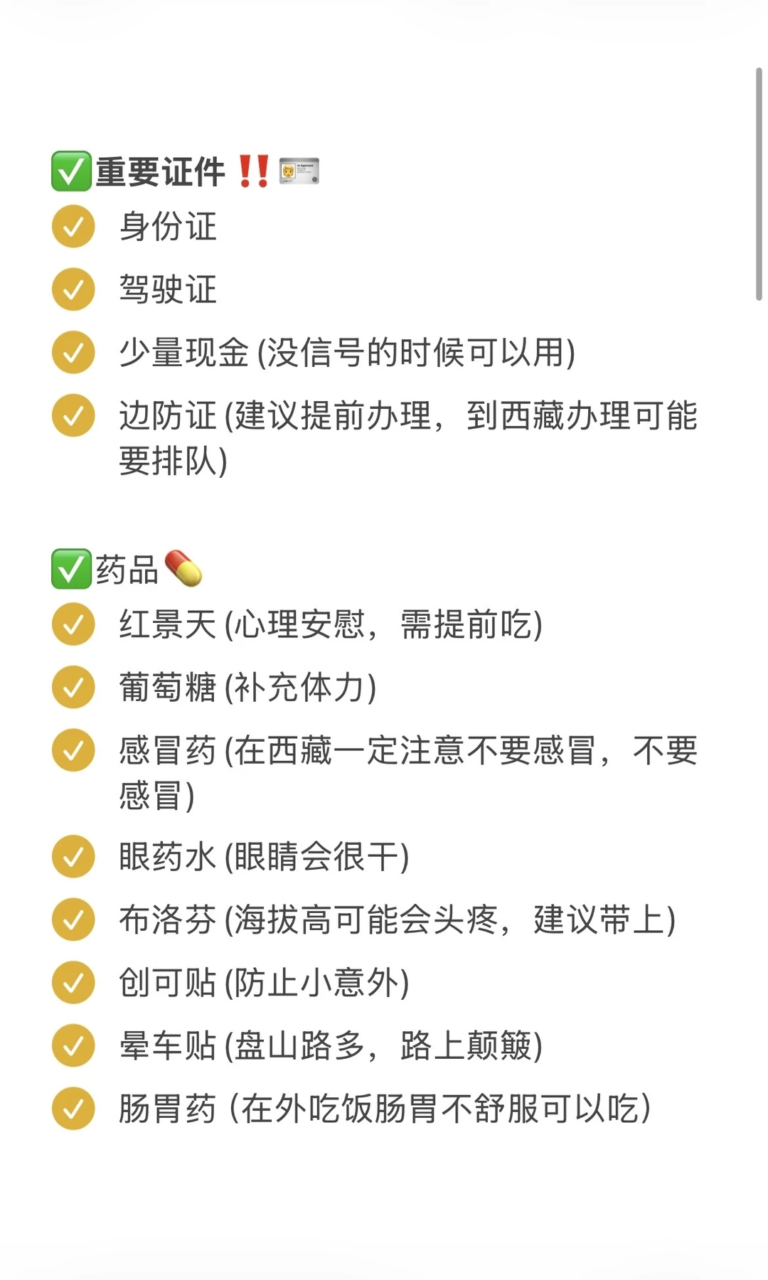 ✔️边防证(建议提前办理,到西藏办理可能要排队)