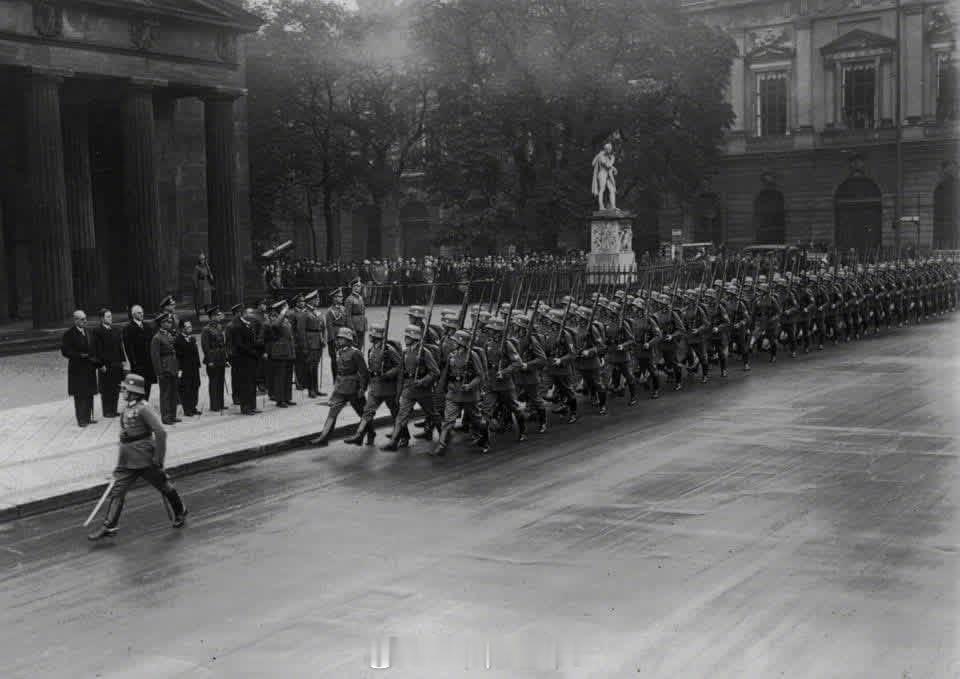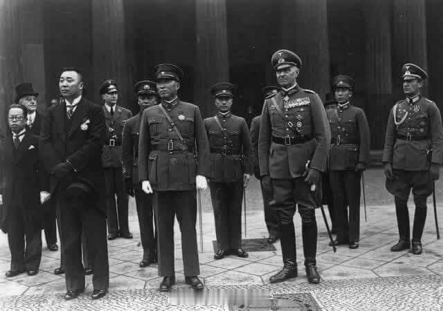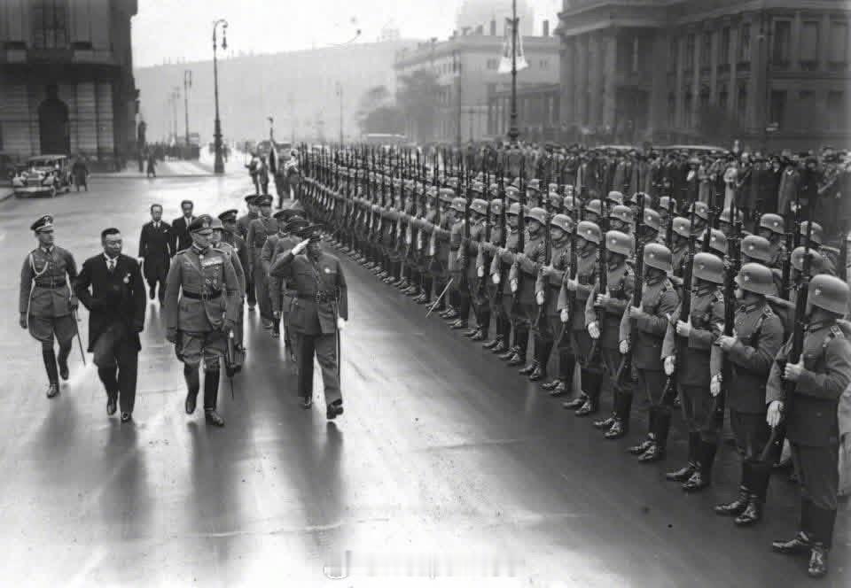烽火问鼎计划照片中的历史 1935年,德国阵亡将士纪念日柏林举行阅兵,冯·布隆伯格将军与中国陆军及海军代表团一起校阅德国国防军仪仗队。照片地点为在菩提树下大街新岗哨前所拍摄。