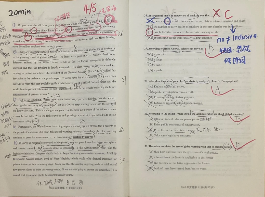 三,最后将选项与文章内容相对比,排除相悖选项。