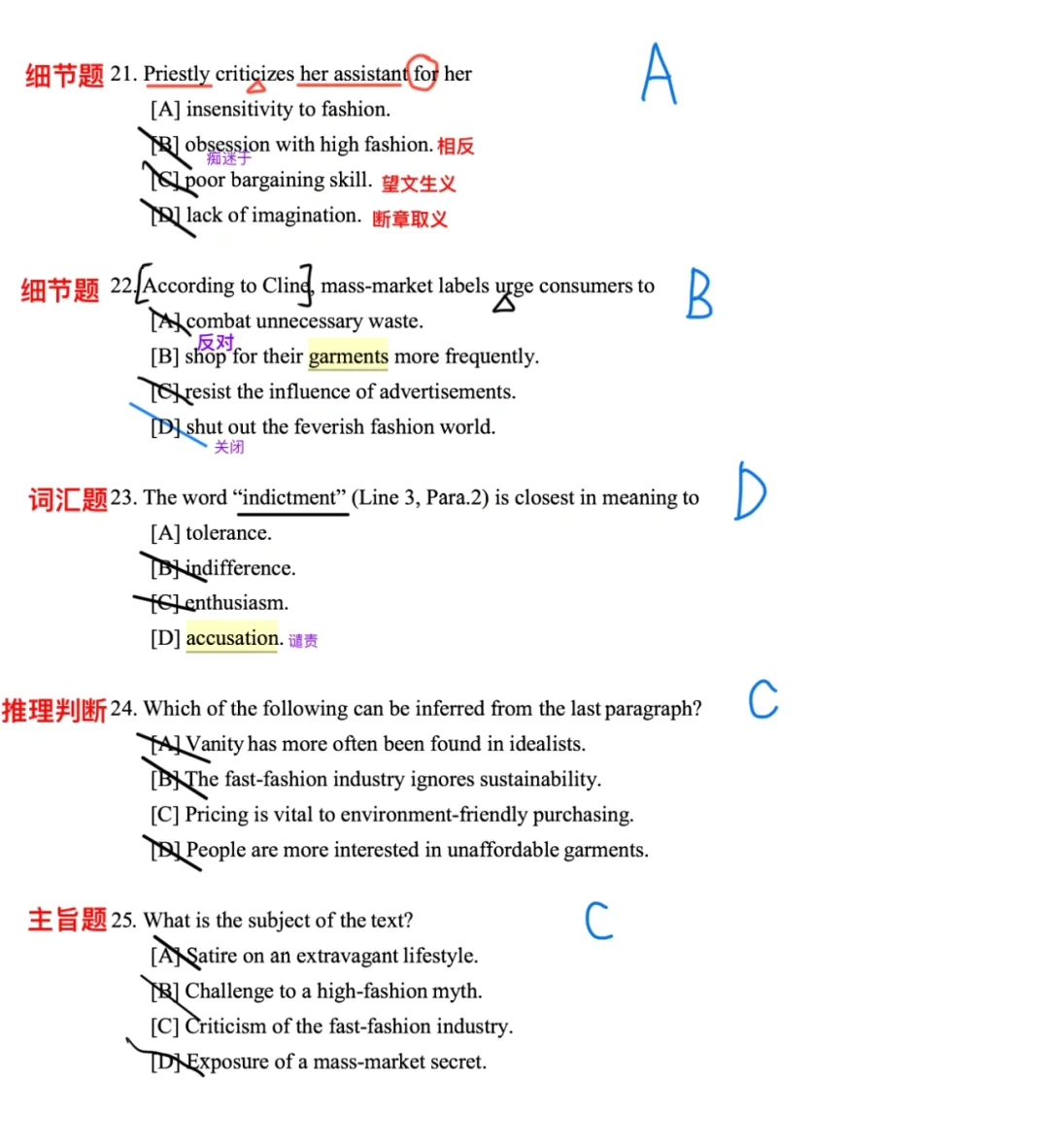 ⚠️注意:例证题和细节题都要定位,但是细节题定位点即为答案,而例证题定位点并非答案,答案在例子前或例子后