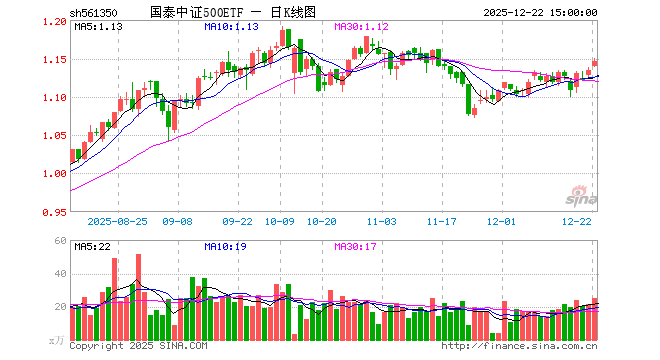 12月22日,国泰中证500ETF(561350)涨1.06%,成交额2869.29万元。当日份额增加300.00万份,最新份额为1.04亿份,近20个交易日份额增加2100.00万份。最新资产净值计算值为1.19亿元。