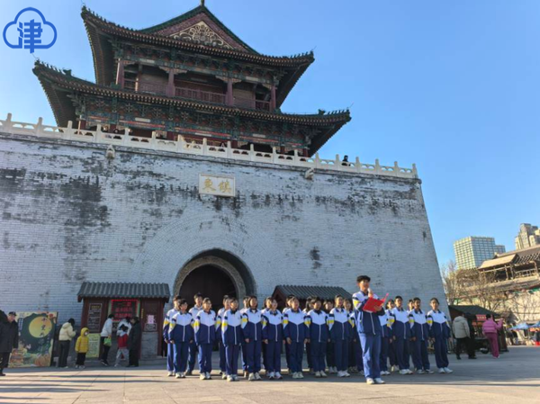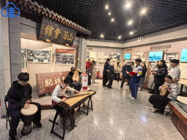 民乐演奏《茉莉芬芳》、朗诵《少年中国说》、快板讲述“天津”的由来……展厅里,学生们将天津故事娓娓道来的同时,还穿插表演形式丰富、对应主题的文艺节目,生动展现了天津卫古今交融、多元并蓄等文化特色,以及天津人尊师重教、坚韧风骨等精神品格。活动尾声,琅琅书声仿佛文脉赓续的涓涓溪流,令观众感受到文脉的力量与少年的朝气。