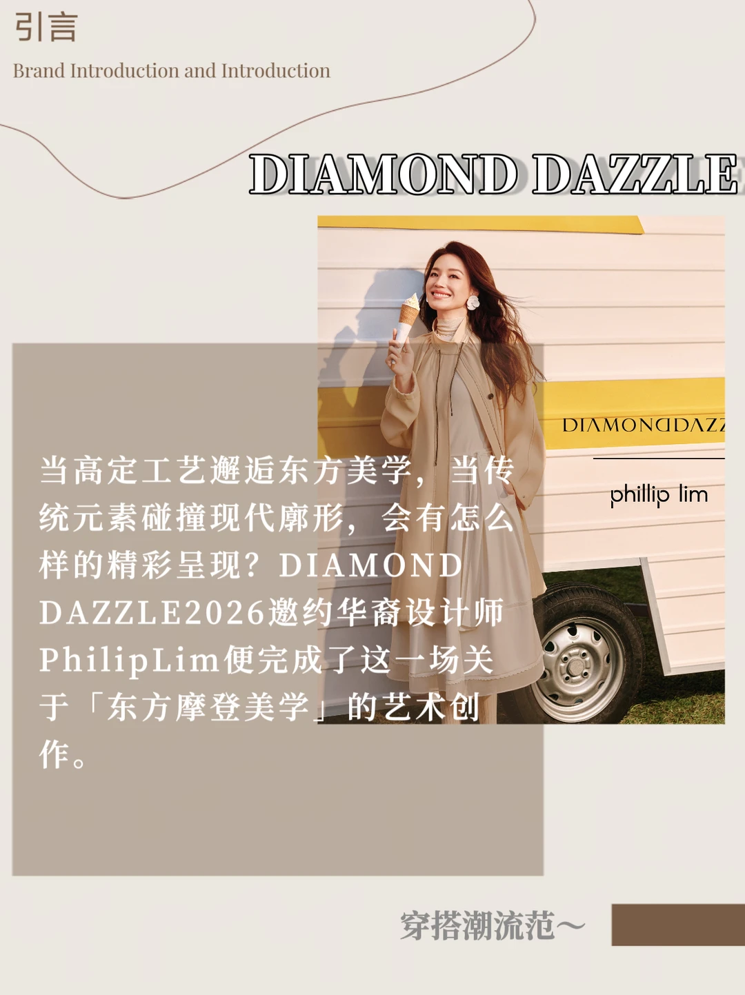 DIAMOND DAZZLE始终以艺术为灵感源泉,将“矛盾冲突美学”的设计核心,注重精致的手工细节、繁复的制作工艺、优质的材质与高级剪裁,追求服装的诗意化和时尚工艺化。