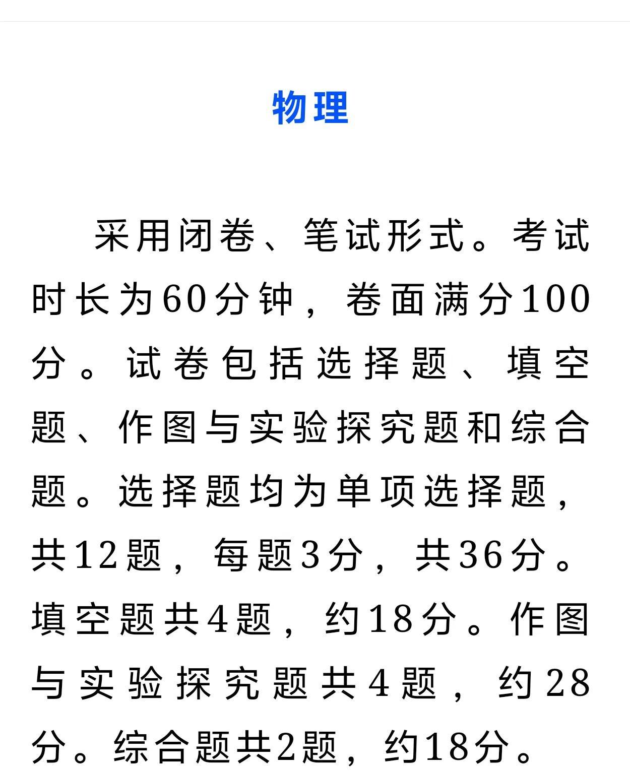 《湖南省初中学业水平考试试卷结构(202