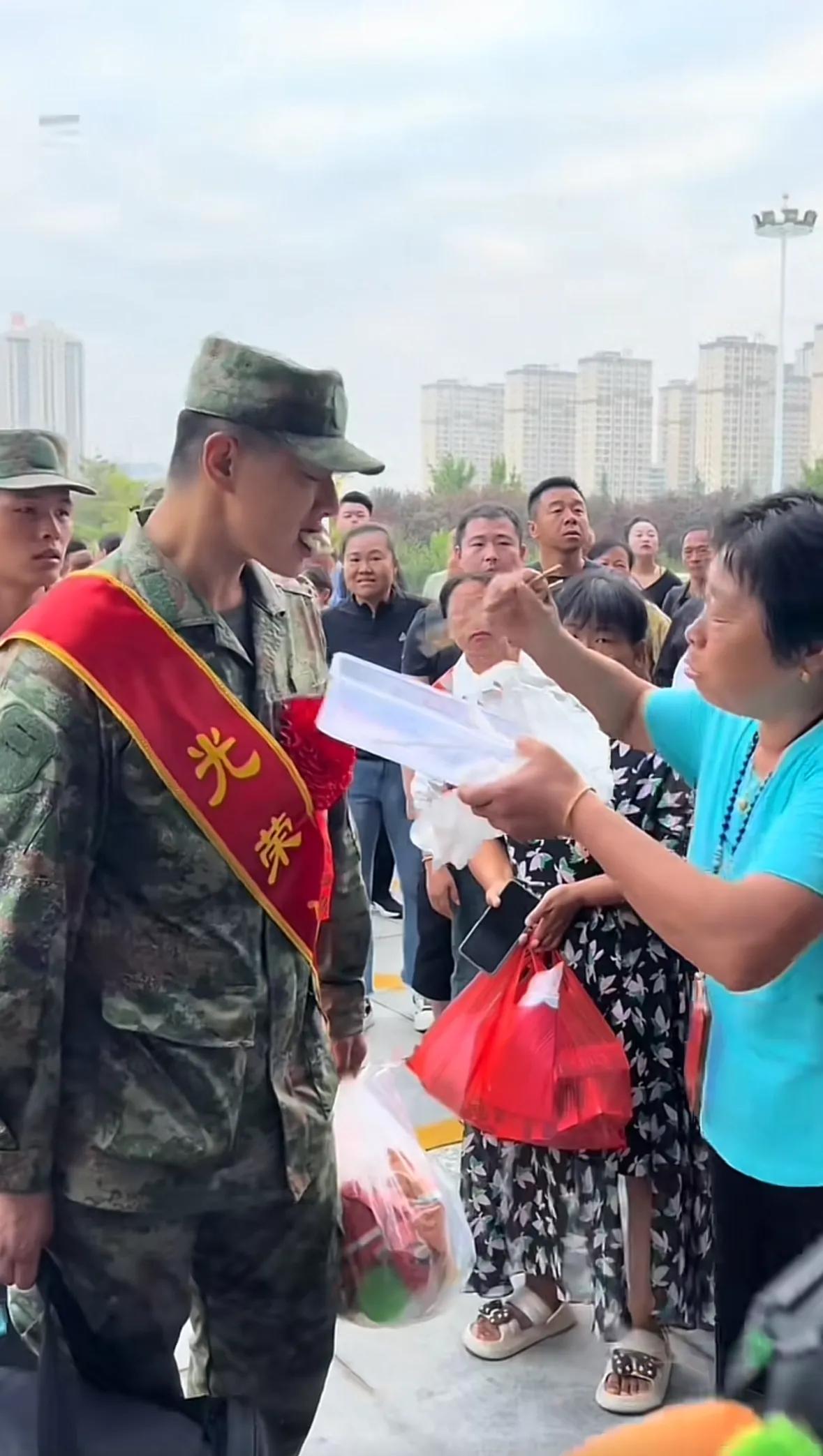 泪目了!三门峡一位奶奶到火车站没赶上孙子,晚了几分钟,孙子进站了,他端着一盒饺子急得都快哭了,可是看着排着长长的新兵队伍,她灵机一动,孙子没吃上她的饺子,这些孩子吃上也是一样的,都是去保家卫国,这些饺子不白瞎 然后她跟孩子妈妈给他们一个人喂一个饺子,这时一个新兵小伙吃了饺子掩面哭了,不知道他是感激还是因为离家还能吃到饺子感动而哭,但有一点可以确定,喂饺子和吃饺子的都是有爱的人 上车饺子下车面,这位奶奶的孙子虽然没吃到她做的饺子,但是她此刻心里肯定是比自己孙子吃了还开心