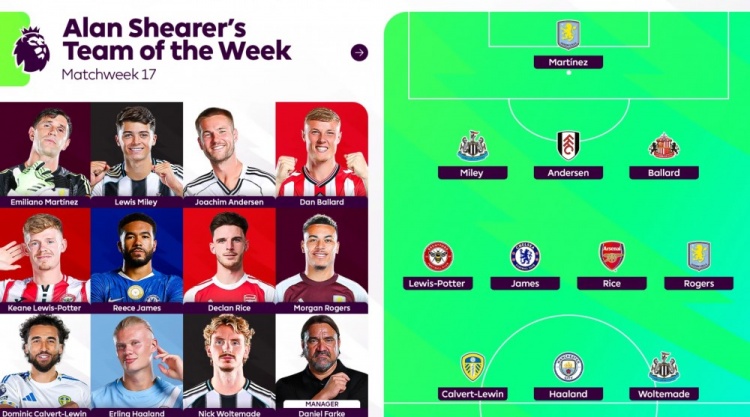 前锋:勒温(利兹联)、哈兰德(曼城)、沃尔特马德(纽卡)