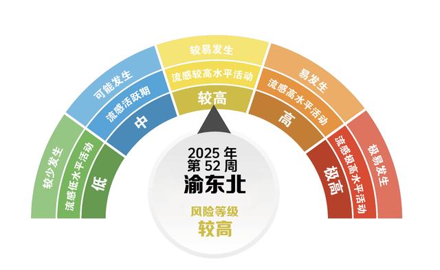 第1眼TV-华龙网讯(记者唐雨)12月23日,重庆市疾控中心联合市气象服务中心,推出2025年第52周(12月22日-28日)“流感风险等级与防控建议”。数据显示,重庆本周流感传播风险较上周略有下降,但仍处于冬春季流行期,随着气温走低、元旦节前后人员流动、聚集性活动增加,传播风险持续存在。
