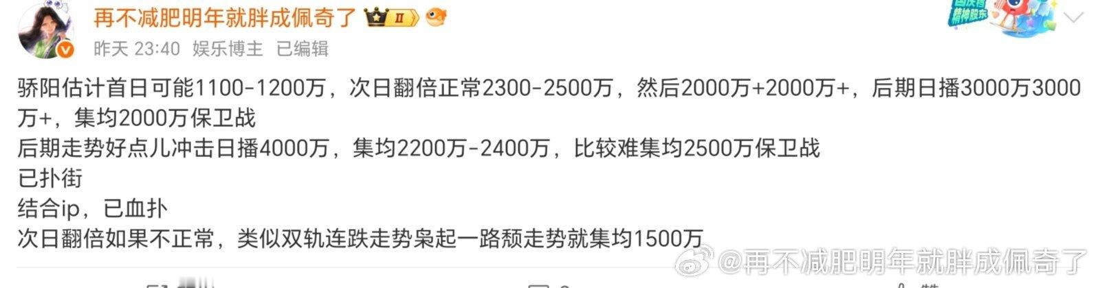 骄阳首日才1000万,1100我是考虑粉丝说云包场多给了点量的,扑真惨啊麦也是ip粉碎机