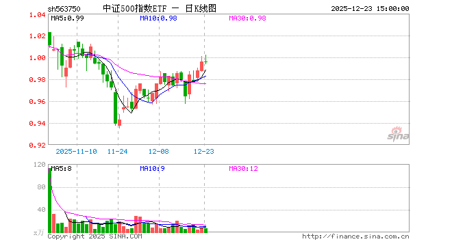 12月23日,中证500指数ETF(563750)涨0.00%,成交额697.65万元。当日份额减少250.00万份,最新份额为4.50亿份,近20个交易日份额增加2500.00万份。最新资产净值计算值为4.49亿元。