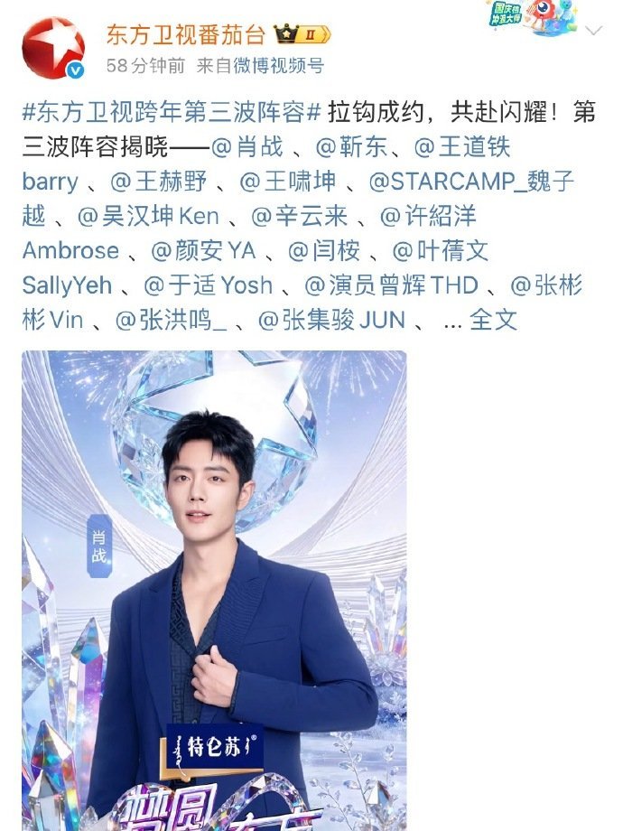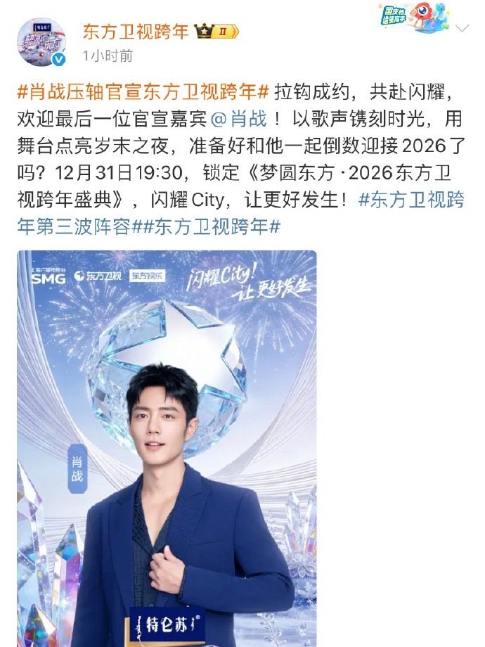 东方卫视官宣肖战的排面东方卫视:我得告诉全世界!! 这是发了多少条了啊