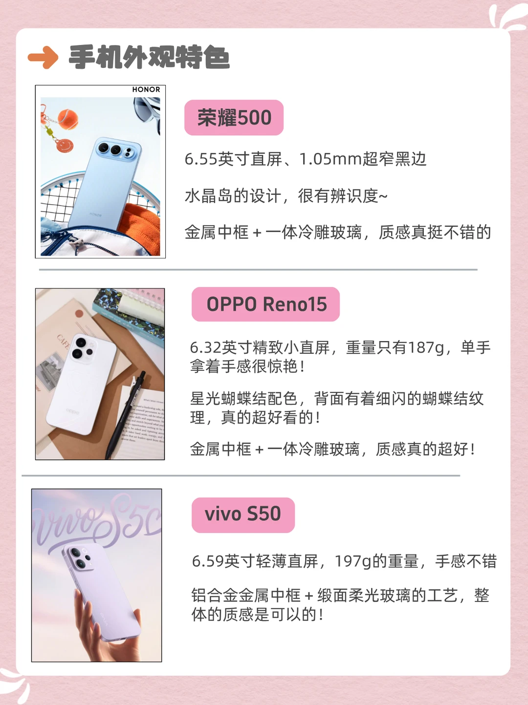 年底新机潮真的太卷了📱!价格不到3K,主打人像、轻薄和续航,是不是让你挑花了眼?[失望R][失望R]我也是第一时间体验了三款真机——OPPO Reno15、荣耀500、vivo S50,看看哪一款更适合你![吧唧R][吧唧R]