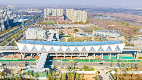 8号线山东大学站位于章丘区龙山街道圣井立交桥西南侧,车站总长约140米,宽约40米,采用“站城一体”设计理念,与未来商业开发相结合,是一次TOD新模式的积极探索。
