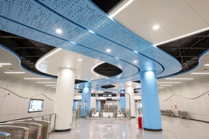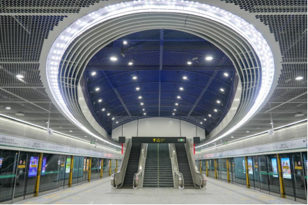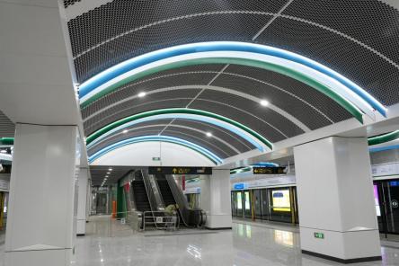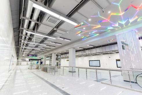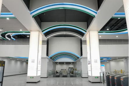这条线路衔接济南东部科创高地与高校区域,设计师团队提出“以科技创造新城市”的主题,延续1号线清水混凝土风格,强调功能性与艺术性的统一,实现“标准化不标准,模块化不单调”的设计效果。