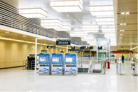 山东现代学院站毗邻章丘龙山文化发源地,延续建筑“文化之舟”理念,采用木纹转印金属吊顶与混凝土墙面,呼应龙山文化“夯土为座,木构为顶”的古老建造智慧,使室内外风格浑然一体,传递出浓郁的文化底蕴。