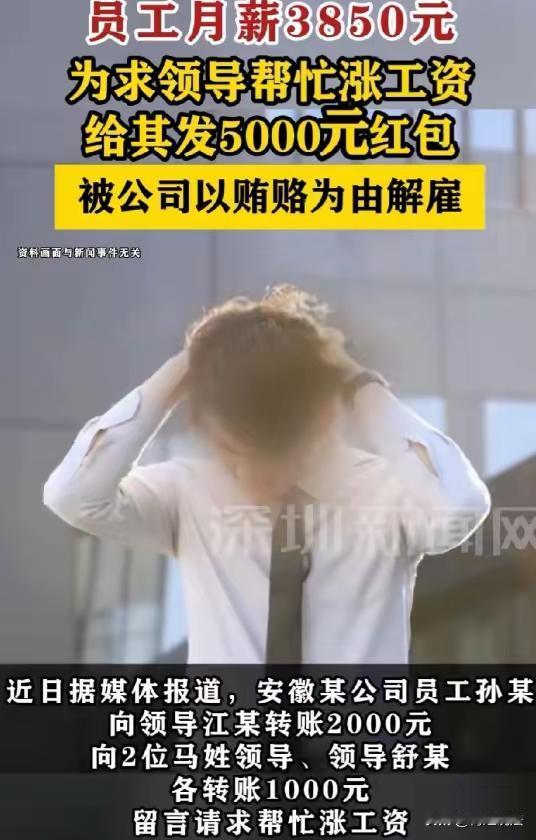 这起事件反映出打工人面对生活压力时的困境,以及一些人在压力下可能采取的错误行为。通过这个案例,我们可以得出以下几点深刻的启示和思考: 合法合规是职业发展的底线:孙某试图通过红包“请”领导帮忙涨薪,违反了法律和公司的规章制度。无论压力多大,违规违法行为都可能带来更严重的后果。坚守底线,走正当途径,才能实现长期稳定的发展。 企业管理制度应公平透明:公司用新版《员工手册》认定行为违规,虽有其依据,但在更新制度时应确保员工知情并合理沟通。这有助于维护员工权益,减少误解和争议。 提升自我能力才是根本:孙某的故事提醒我们,涨薪最稳妥的办法还是通过提升能力、表现业绩来争取,而非依赖“走捷径”。只有不断学习和成长,才能赢得上级的认可和升职加薪。 面对压力,理性应对:生活的困难不可避免,但应寻找健康、合法的解决方案。家庭和工作都需要理性对待,避免因一时冲动而陷入更加不利的境地。 社会应加强法律和职业道德教育:预防类似事件发生,需要社会、企业共同努力,增强员工的法律意识和职业道德,让“以合法方式争取权益”成为共同认知。 总结来说,打工人应坚持正道,通过不断努力和提升自己来实现薪资增长。遇到困难时,要理性应对,而非依赖非法或不道德手段。只有这样,才能在职业道路上走得更远、更稳。职场真实感受 职场人心理