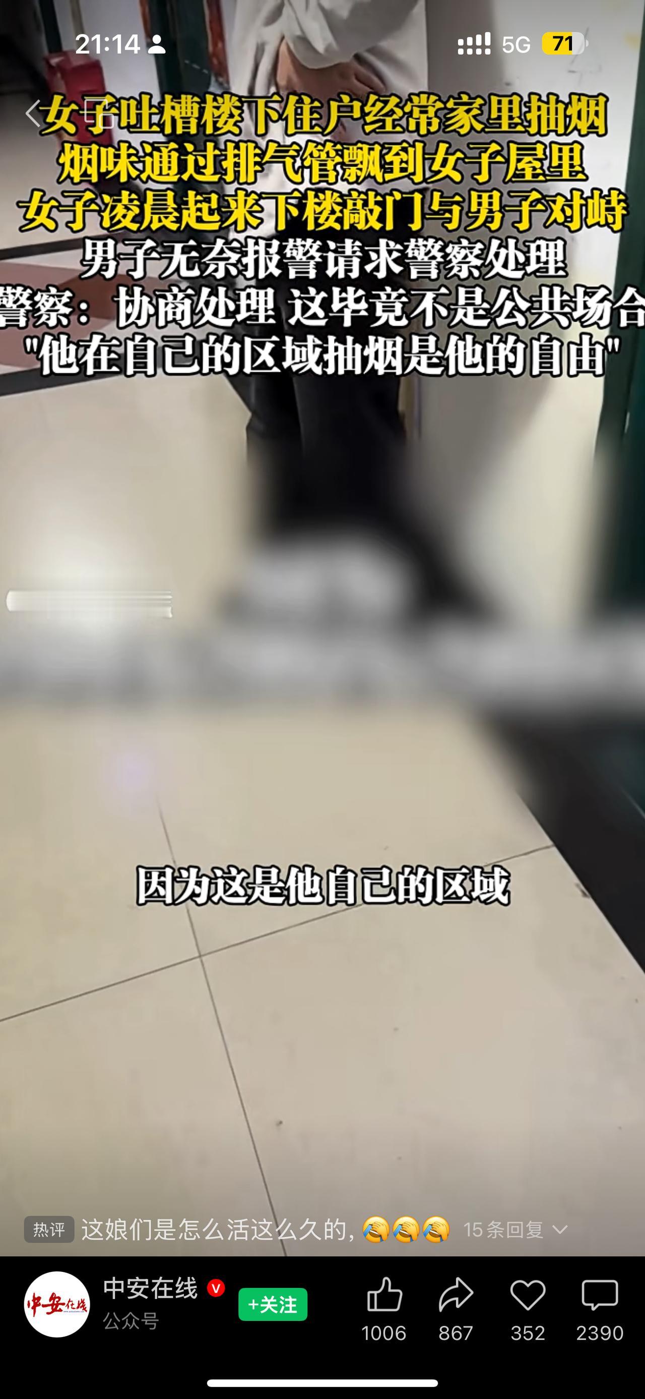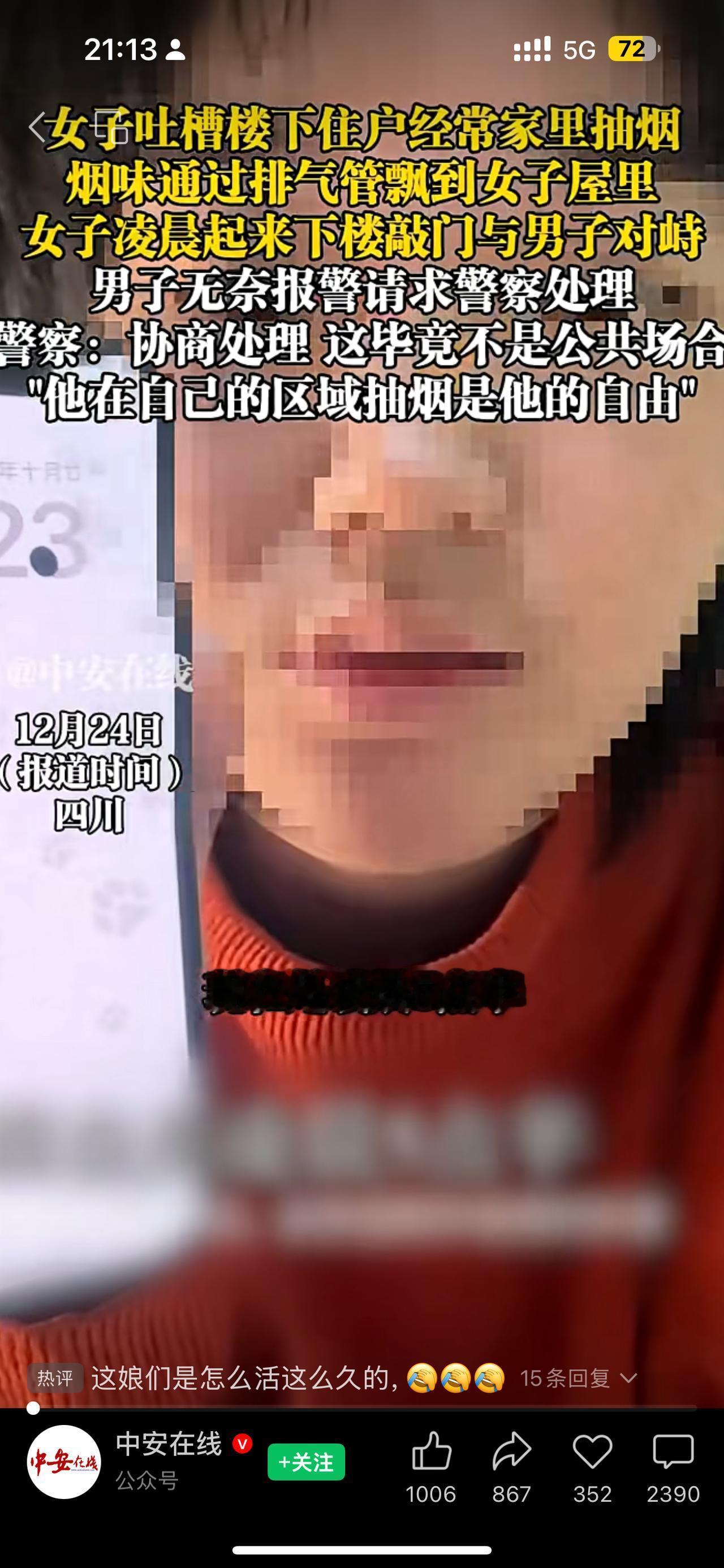 小仙女真的无敌了,楼下抽烟引发邻居大战! 四川一男子在家抽烟,楼上女邻居怒敲门,声称烟味通过排气管飘进她家。男子不服气让她报案,民警来了却让女子傻眼:只要不在公共场所,家里抽烟是他的自由。女子气得把这事发到网上,引爆热议。 “我家楼下天天抽,烟味飘满屋,根本受不了!”网友共鸣这份无奈。也有人嘲讽“买得起独栋别墅就别烦邻居!”有人建议“装个止逆阀就完事了!”这背后,其实有个行业细节常被忽略:家用烟道设计大多没考虑烟气逆流问题,导致烟味轻易通过管道串味。 邻里关系靠的不是禁令,而是理解和技术的结合。男子固然有屋内自由,但若能顺应现代排烟原理,装个止逆阀、改善通风,何必一味争吵?女子的焦虑虽有道理,但用恶语相向只会激化矛盾。 这场看似简单的“烟味争端”,实则暴露了城市居住环境中“公共与私域边界”的新难题。我们如何在尊重彼此自由的同时,利用科学技术避免生活干扰?这正是90%网友没深究的关键。 邻里间,不该是冷战的战场,而应是理性沟通与技术革新的共同体。你怎么看:屋内抽烟是自由,还是公共卫生隐患?评论区聊聊你的经历和看法。