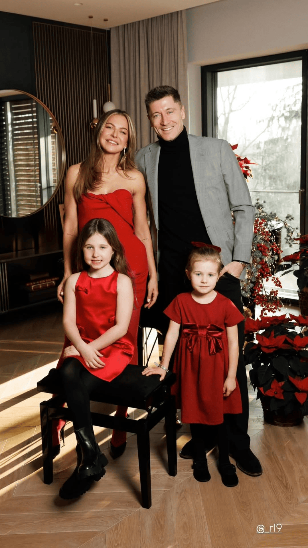 虎扑12月24日讯平安夜,巴萨前锋莱万多夫斯基在社交媒体发布全家福照片。