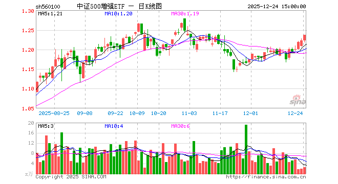 12月24日,中证500增强ETF(560100)涨1.23%,成交额314.41万元。当日份额减少150.00万份,最新份额为6858.03万份,近20个交易日份额减少150.00万份。最新资产净值计算值为8472.41万元。