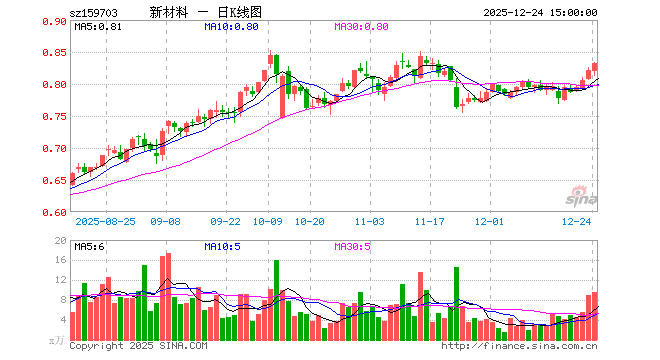 12月24日,新材料ETF(159703)涨1.34%,成交额785.24万元。当日份额增加60.00万份,最新份额为8118.16万份,近20个交易日份额减少960.00万份。最新资产净值计算值为6759.18万元。