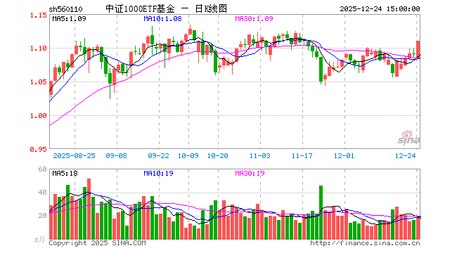12月24日,中证1000ETF基金(560110)涨1.74%,成交额2060.46万元。当日份额减少300.00万份,最新份额为1.67亿份,近20个交易日份额减少1200.00万份。最新资产净值计算值为1.85亿元。