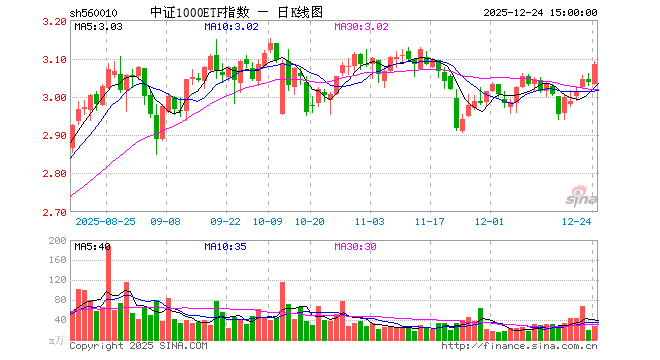 12月24日,中证1000ETF指数(560010)涨1.58%,成交额8513.93万元。当日份额增加600.00万份,最新份额为112.39亿份,近20个交易日份额增加7200.00万份。最新资产净值计算值为346.88亿元。