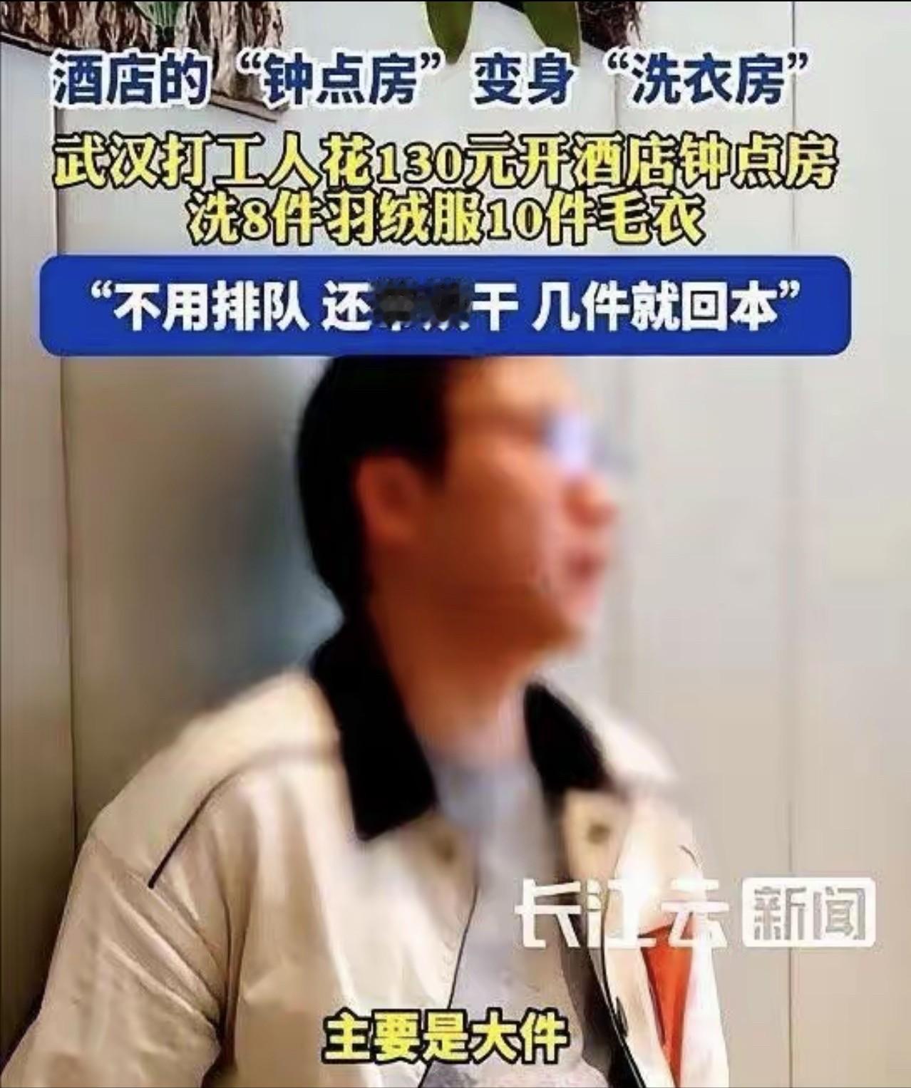 “太有头脑了!”武汉一小伙130块钱开了一小时钟点房,把八件羽绒服和十件毛衣洗了
