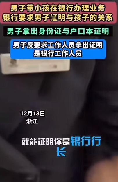 “终于有硬茬来治银行了。” 男子带小孩去银行取育儿补贴,柜员要求男子证明与孩子的关系,说户口本照片不行,必须要原件!男子回家拿了户口本,回来要求柜员拿出合同和身份证证明自己是银行的员工!男子:你刁难我,我也刁难你! 近日,一段发生在银行柜台的经历引发网友热议,孙先生(化名)带着孩子前往银行办理育儿补贴领取业务,本以为手续清晰、流程简单,却没想到在“证明关系”这一环节上,产生了不小的争议。 当天,孙先生按要求取号排队,轮到自己后向柜员说明来意,并递交了相关材料,其中,为了证明自己与孩子的亲子关系,孙先生出示了手机里拍摄的户口本照片,照片清晰完整,户主页、本人页和孩子信息页一应俱全,孙先生认为,这足以证明身份关系。 但柜员查看后表示,户口本照片不能作为有效材料,必须出示户口本原件,否则无法办理业务,孙先生当场解释,家离银行不远,但孩子年幼,反复折腾并不方便,而且不少业务早已支持电子材料,他希望柜员能在合理范围内灵活处理。 柜员则回应称,这是内部规定,自己只是按流程办事,没有原件就不能继续操作,双方沟通数分钟,始终未能达成一致,最终,孙先生无奈带着孩子回家取户口本原件。 后来,孙先生重返银行,将户口本原件郑重递给柜员,柜员仔细核对,确认亲属关系无误后,便着手继续为其办理业务,就在这时,孙先生提出了一个新的要求,既然银行如此强调“证明身份”和“原件合规”,那么他也希望柜员出示相关证明。 他的理由很直接,既然客户需要反复证明“自己是谁”,那么提供服务的一方,也理应具备相应的身份透明度。 这一要求让柜台气氛一度变得紧张,柜员显得有些意外,表示自己佩戴了工牌,银行柜台本身就是身份的证明,不可能向客户出示个人身份证件,双方再次发生言语交锋,最终在网点负责人出面协调下,业务得以继续完成。 事件被孙先生发到网络后,引发大量讨论,有网友支持孙先生,认为银行在材料要求上过于僵化,对普通家庭缺乏必要的体谅,尤其是涉及育儿补贴这类民生业务,更应以便民为先。 也有网友指出,柜员严格要求原件并非个人刁难,而是出于合规和风险控制考虑,不能简单对立看待。 还有不少评论认为,这起争议的核心并不在“谁对谁错”,而在于规则如何更清晰、沟通是否更充分,如果银行能提前明确告知材料要求,或在现场给出明确制度依据,冲突或许可以避免。 一件看似普通的柜台小事,之所以引发共鸣,正是因为它折射出公众在日常办事中对“程序”“效率”和“尊重”的期待,规则需要被遵守,但规则如何被执行,同样考验服务的温度。