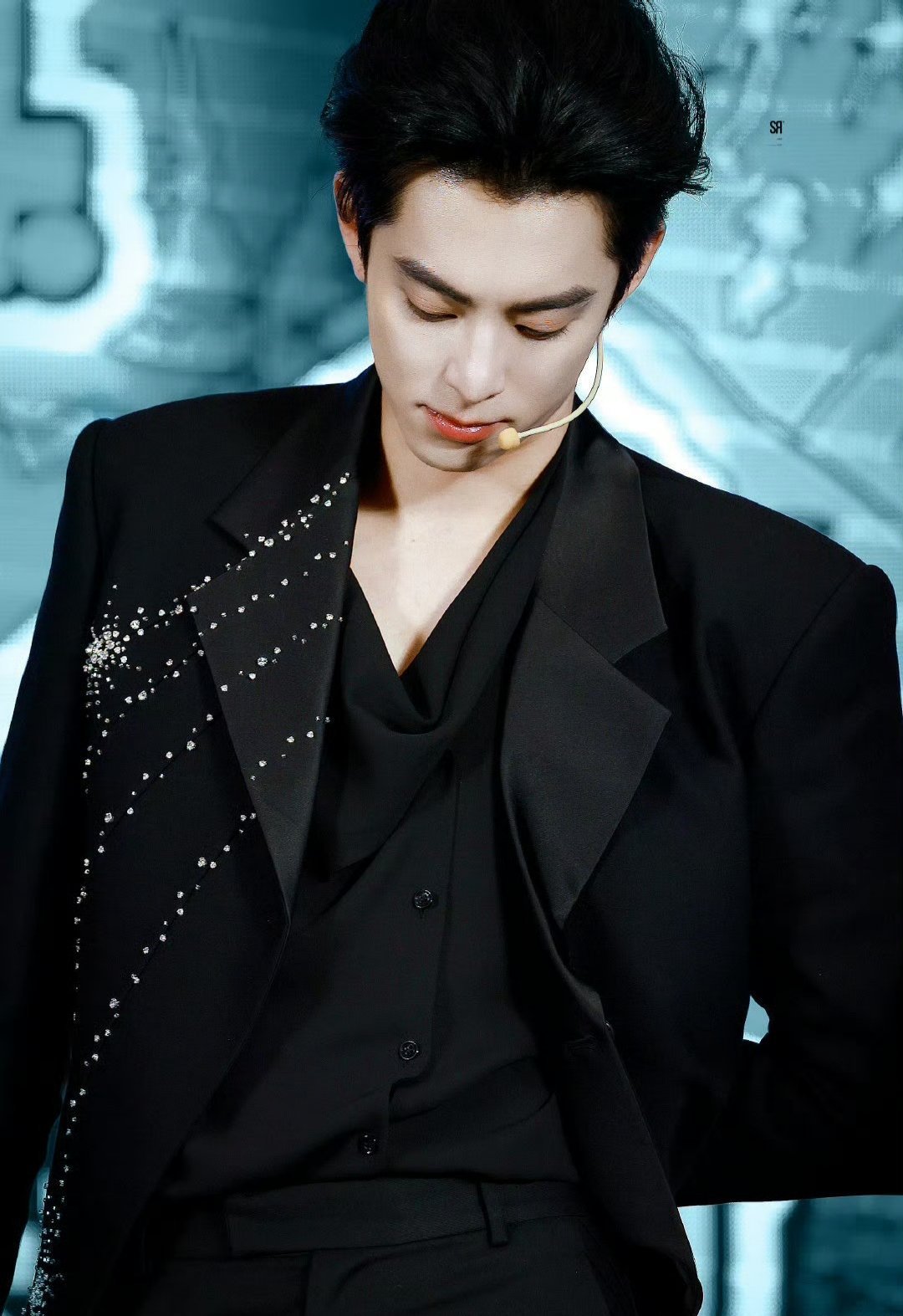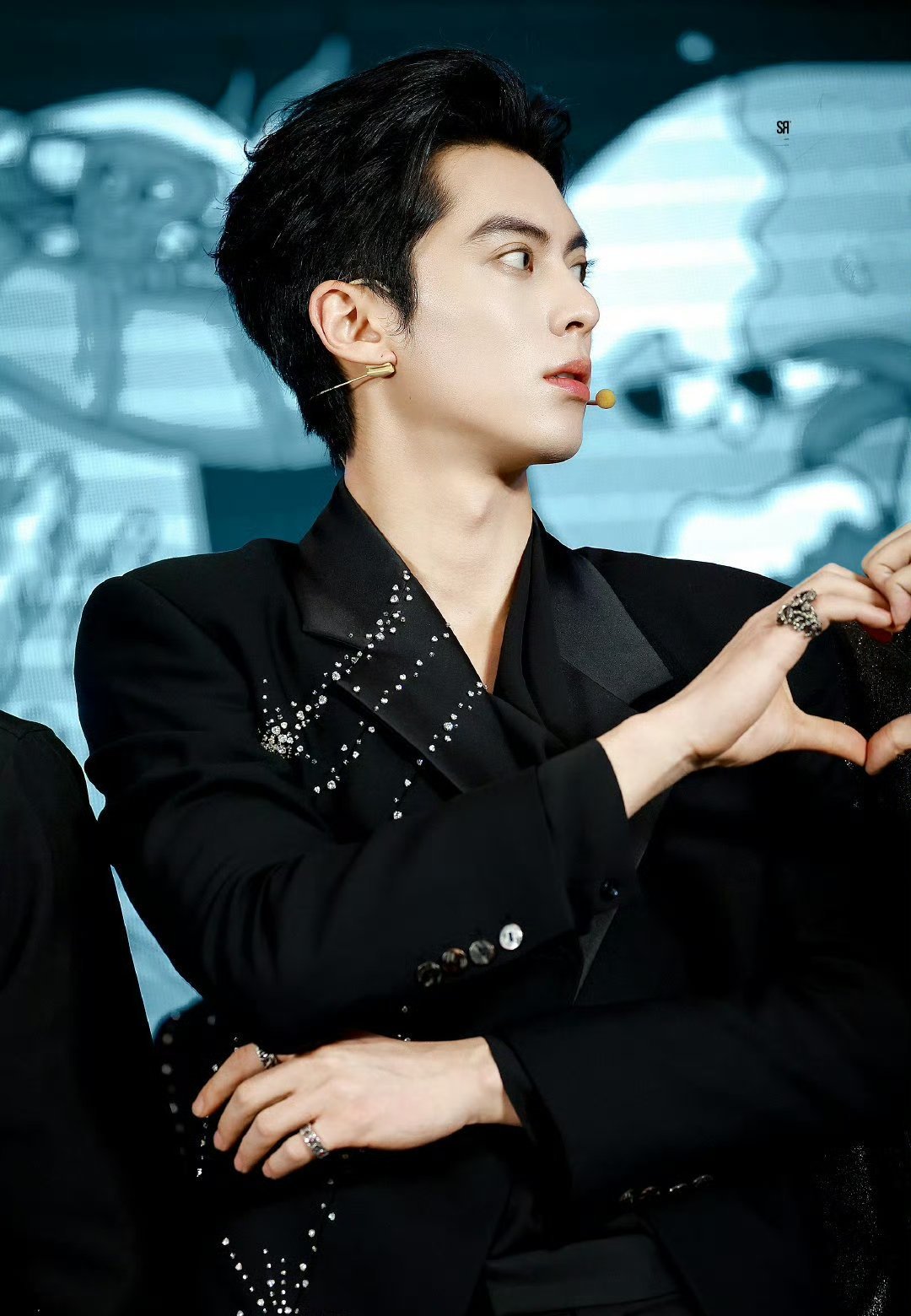今天的王鹤棣,一身黑色造型,很酷!