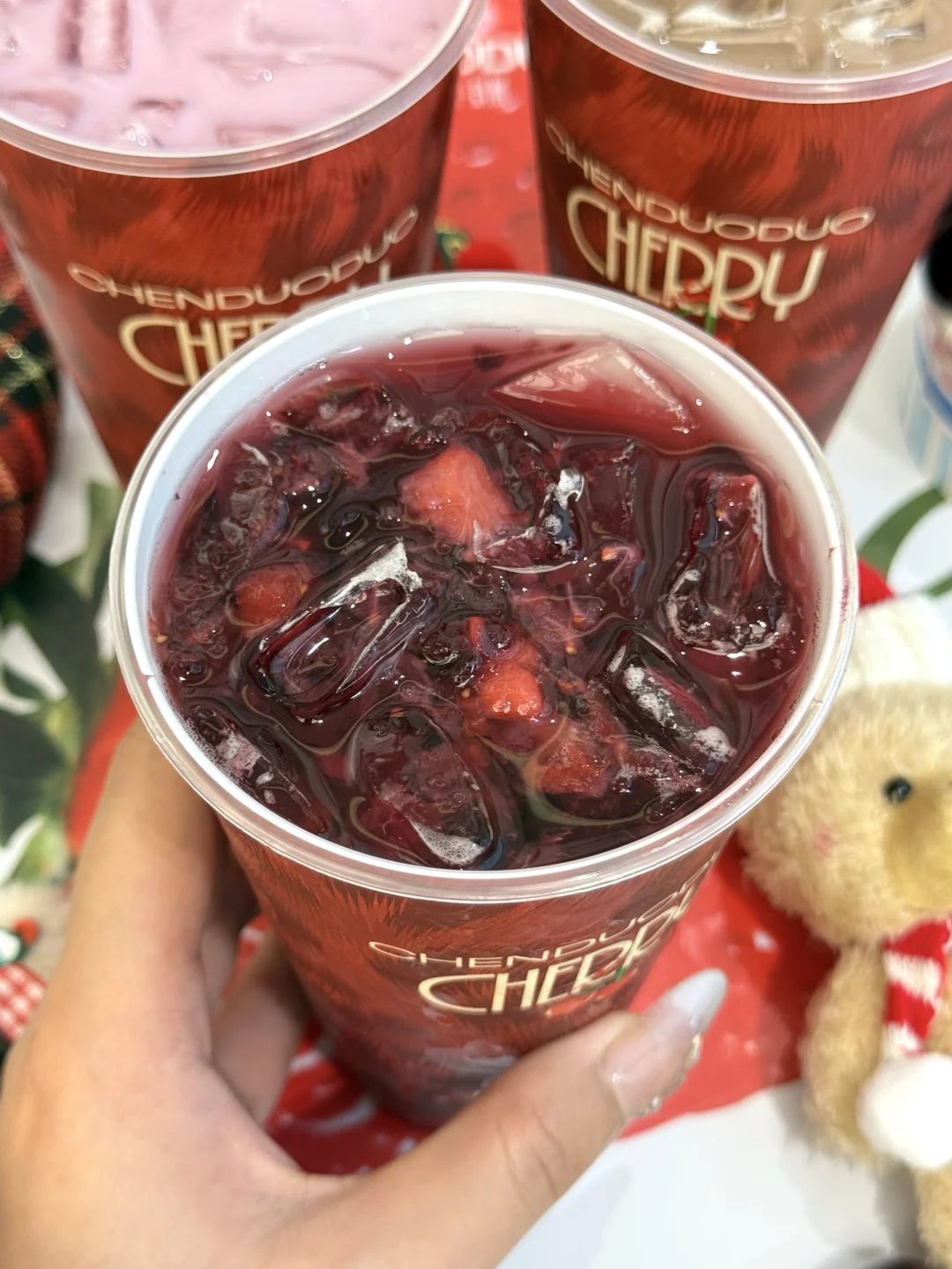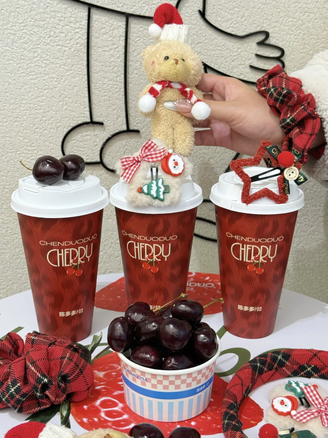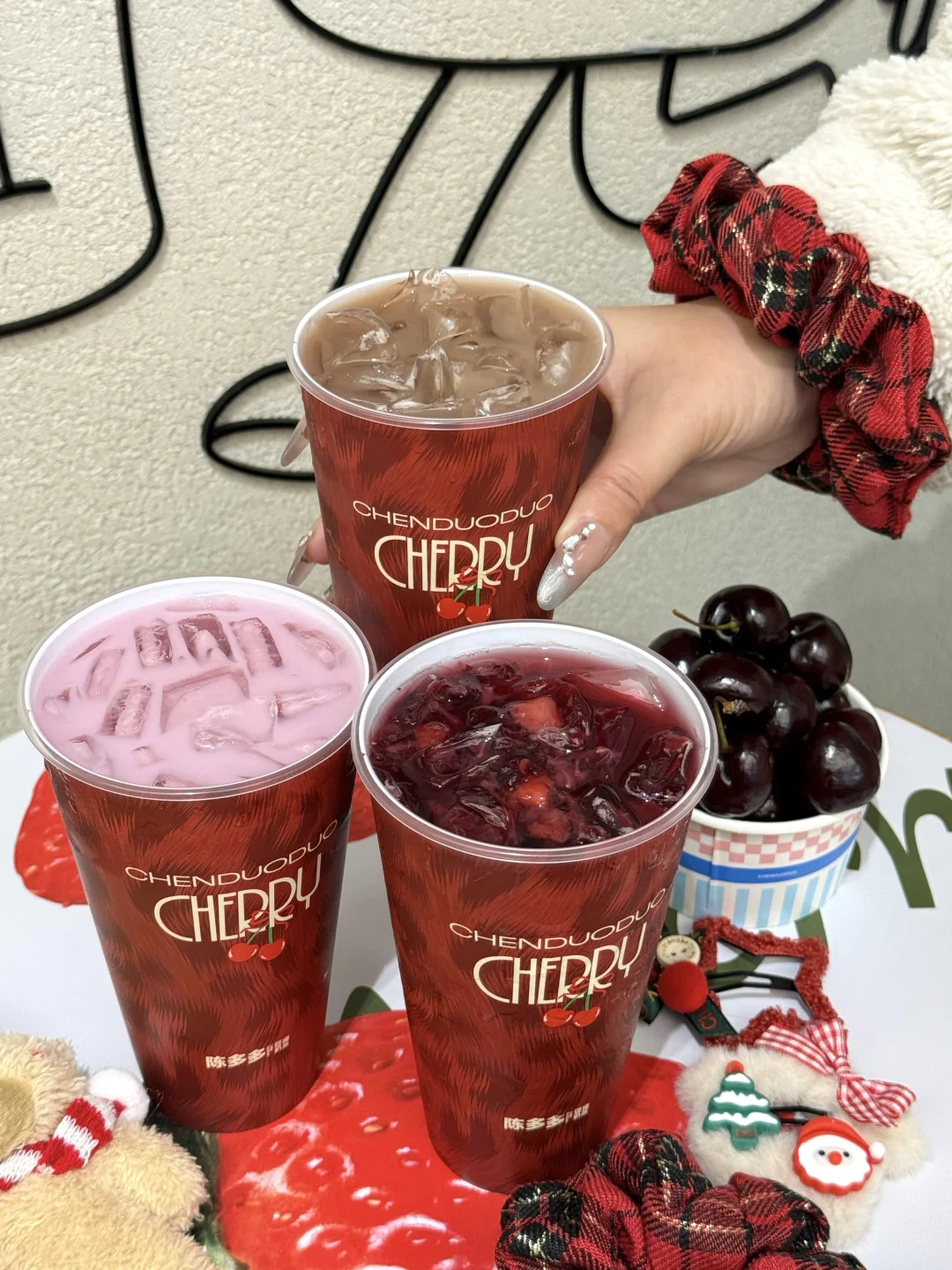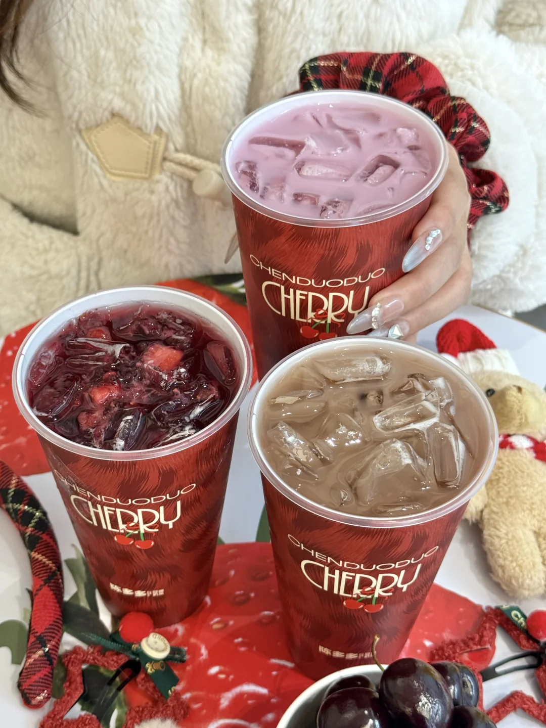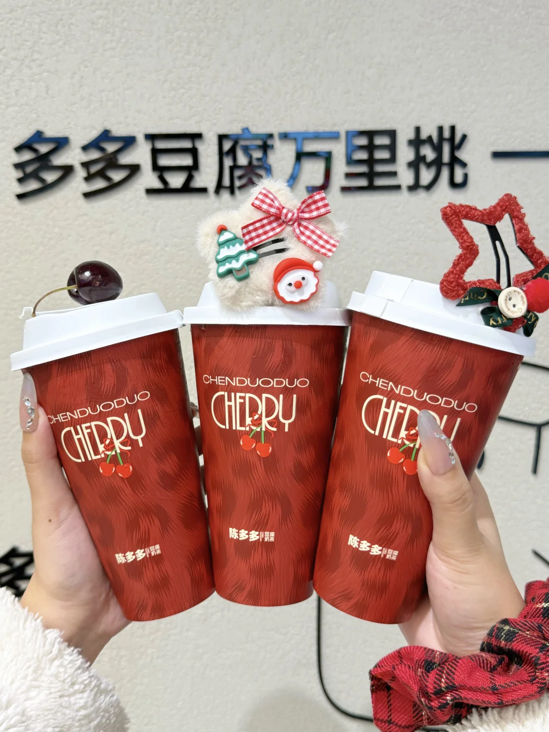今年的第一杯车厘子奶茶是陈多多给的🤤 赶在圣诞前出了三款新品,宠粉丝儿还得是你啊 - 🍒闪耀车厘莓 新鲜车厘子搭配草莓,喝的每口都是果肉,再加上茉莉花香,酸甜度刚好👌🏻 🍒流光车厘奶豆腐 车厘子爆汁果肉的脆甜配上奶豆腐的绵密,双层口感,吼吼喝! 🍒车厘黑森林 车厘子果肉+糯叽叽的米布,浓郁可可香融合着脆甜爆汁的车厘子,甜而不腻 现在每杯还可以🉐周边 🈶可爱小熊/圣诞发夹/圣诞发圈可以选 - 赶紧叫上好闺闺,一起喝红红火火的车厘子奶茶吧!