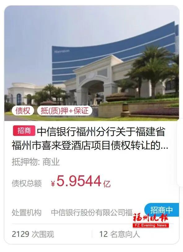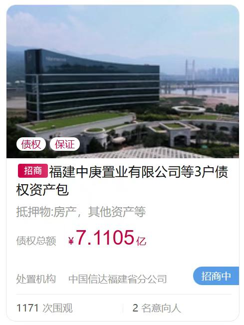 福建中庚置业债权资产包3.233亿成功转让!抵押物含中庚喜来登酒店 据了解,中庚喜来登酒店相关债权项目曾多次被“上架”转让, 2023年8月,中信银行福州分行发布喜来登酒店项目债权转让招商公告,彼时债权总额为5.9544亿; 除了酒店作为抵押物外,中庚喜来登酒店2017年至2027年的经营收入也被作为应收账款质押; 今年10月,中国信达福建分公司发布福建中庚置业有限公司等3户债权资产包转让招商公告,债权总额为7.1105亿,中庚喜来登酒店2015年至2027年的经营收入被作为应收账款质押; 不得不说,作为中庚集团旗下比较优质的资产,福州中庚喜来登酒店为集团提供了不少现金流。