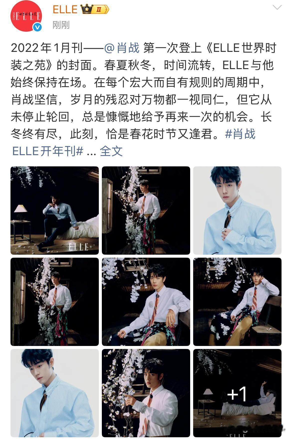 12月26日,肖战ELLE四季大片! 虽然是春天主题但肖战貌似把四季元素都穿在了身上,代表春花的丝巾,象征夏天的领带,秋天的土色系裤子,冬天的雪花胸针跟手镯,看似混搭有格外和谐! 粉丝都在支持实体,作为剧粉的我就支持支持网体吧!2022年肖战第一场登上ELLE,一晃三年过去了,ELLE镜头下的肖战一如既往的帅,期待未来能在ELLE看到更多不一样风格的肖战!