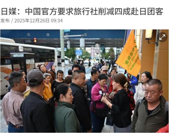 日本媒体出来叫屈了,日媒声称,中国这是故意针对日本!12月26日,日本电视台引述多名消息人士称,中国官方要求,国内旅行社将赴日旅游团人数削减至六成,这项措施原以为将执行至12月,后来被要求延长至明年3月。日媒表示,中国有关当局在召见国内大型旅行社负责人时,明确要求逐步降低赴日团体客量,并叮嘱业界“不得”对外张扬。 日媒表示,受此影响,中国多家旅行社据报已陆续暂停受理赴日团客的相关预订及业务。北京过去曾多次呼吁民众自发减少赴日,但这次“直接下达”具体的比例限制,显示施压力度显著升级。很显然,从这一则消息来看,日媒明显是跳出来叫屈了,日媒认为我们这是在故意针对日本。 可日媒这话纯属选择性失明,压根不提自己近期做了多少招惹是非的事。早从11月开始,中国外交部和文旅部就接连发布赴日旅游安全提醒,不是没事找事,是日本当地针对中国游客的暴力犯罪案件,今年以来直接翻了一倍。 更让人闹心的是这些案子的破案率还不到5%,大白天在热门商圈都可能遭遇抢劫袭击,真出了事想维权都难,这种情况下提醒民众谨慎前往、调控团客数量,本质是在保障国人安全,怎么就成了针对? 日媒只盯着自己的损失喊冤,却对背后的因果关系避而不谈。高市早苗内阁这段时间小动作不断,一边在国会高调宣称“台湾有事即日本有事”,公然干涉中国内政,一边还放任官员放出核武装的危险言论,严重破坏中日关系氛围。在这种前提下,调整赴日旅游团规模本就是合理反应,日本不想着反思自己的挑衅行为,反而倒打一耙说中国针对,未免也太矫情。 而且所谓的“损失”,本质是日本旅游业过度依赖中国游客的必然结果。数据摆在这里,2025年1到10月,中国大陆游客占访日外国游客总数的23%,消费额更是占到近四分之一,相当于日本同期实际GDP的0.3%。 爱知县一家经营了四十多年的温泉酒店,单是11月和12月就有六十多个中国旅行团取消,损失高达两千万日元,连索赔的地方都找不到。福冈、静冈等地的旅行社和酒店,也都被退订潮打了个措手不及,静冈机场上海航线的班次更是直接削减了一半。 有意思的是,即便有明确提醒和团客限制,仍有部分游客因提前订好行程、舍不得沉没成本,或是被低位日元汇率吸引,坚持赴日。 日本媒体还特意抓着这些游客采访,试图炒作“中国抵制无效”,却刻意忽略大多数人的选择。 自11月中旬以来,中国航司已有近五十万张飞日机票被退订,占总预定量的32%,山东、北京等多家旅行社直接冻结了所有赴日团期,11月下旬后更是连咨询量都归零,不少原定赴日的团队还紧急转往东南亚。 日本更该担心的是这种影响并非短期现象,原本只是执行到12月的措施被延长至明年3月,意味着市场冷却期还会持续,而日本旅游业的困境还不止于此。 中国此前已收紧稀土等关键资源的出口管制,日本90%以上的稀土依赖进口,其中六成来自中国,就算想转向越南、缅甸采购,最终发现背后的加工企业还是中国公司。旅游业受挫叠加资源供给压力,本就脆弱的日本经济更是雪上加霜,第三季度GDP年率已经收缩2.3%,私人消费和资本支出双双下滑。 说到底,日媒的叫屈根本站不住脚。中国从来不会无缘无故采取措施,调控赴日团客数量,既是对国人安全的负责,也是对日本挑衅行为的合理回应。 日本如果真的想挽回旅游业的损失,想让中日民间交流回归正常,与其在媒体上哭天抢地喊被针对,不如先停下干涉中国内政的小动作,拿出诚意修复双边关系。 否则,别说旅游团人数削减,后续可能还会有更多反噬,到时候再后悔可就晚了。毕竟依赖别人的市场,就得懂得尊重对方的核心利益,这个道理日本不该不懂。
