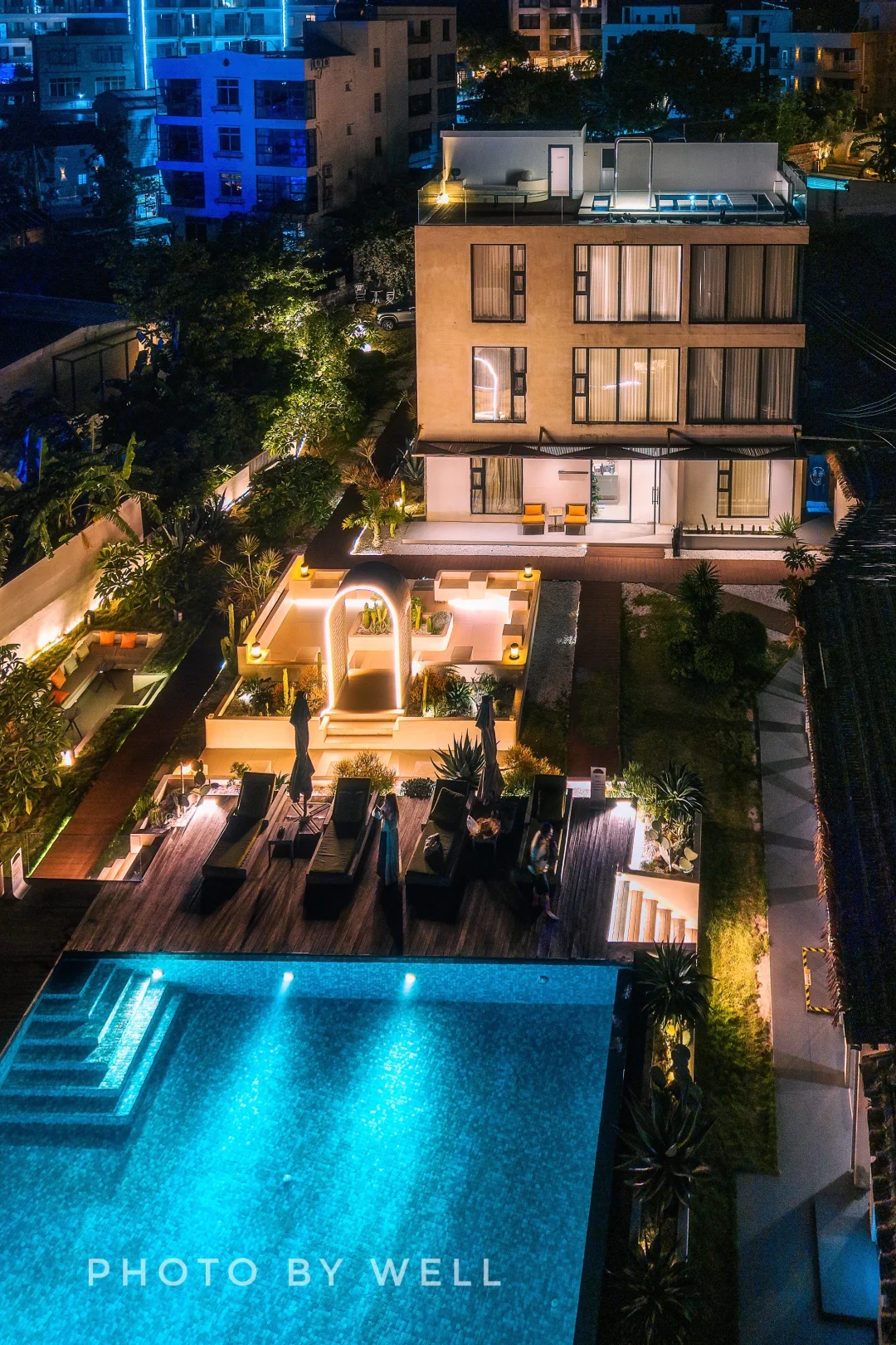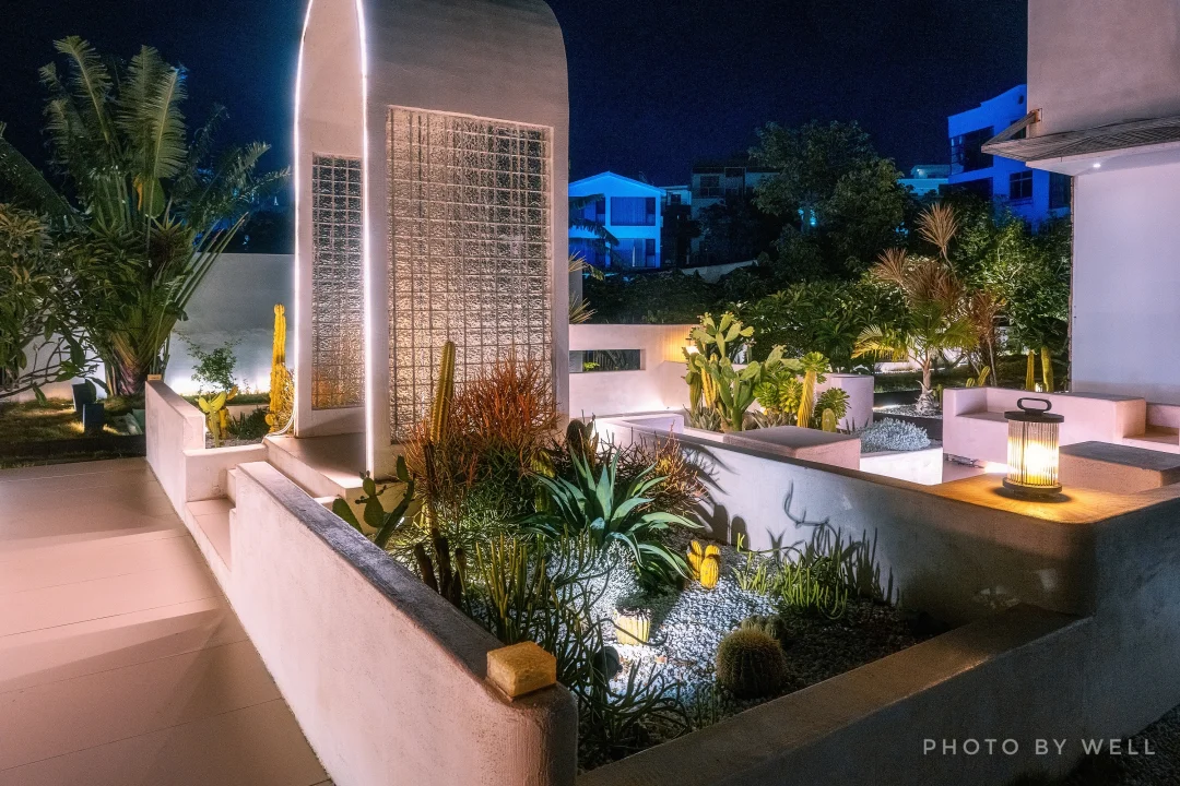 去游玩晚餐后回到酒店,花园里的灯光悄然亮起,营造出浪漫温馨的氛围。泳池旁的花园,是我们几个好友畅谈的绝佳场所。