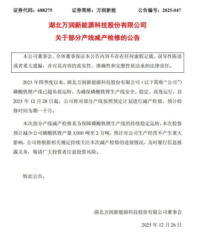 碳酸锂产业链博弈白热化:下游龙头集体停产"硬刚"上游涨价 💥重磅消息:12月25日晚,磷酸铁锂正极材料全球龙头湖南裕能、产量全球第二的万润新能双双公告,将于12月28日起对部分产线减产检修约一个月。 📈价格疯涨:碳酸锂现货价格已突破10.49万元/吨,期货主力合约更是冲破13万元/吨!碳酸锂每涨1万元,磷酸铁锂成本就增加2300-2500元,下游企业毛利率仅剩7.92%左右,利润空间被严重挤压。 🎯产业界反击:这次不一样了!下游企业比上一轮聪明,不再被动接受高价原料。湖南裕能年初至今产能利用率超100%,偏偏选在碳酸锂暴涨时"检修",这时机选择意味深长。集体停产就是要告诉上游:你涨价,我就停产! 💡核心看点:这是一场资本与产业的正面交锋,下游龙头用"停产检修"打破上游控供涨价的套路,监管层适时介入平衡各方利益。产业链博弈升级,谁能笑到最后? 碳酸锂价格 新能源产业链 锂电池 湖南裕能