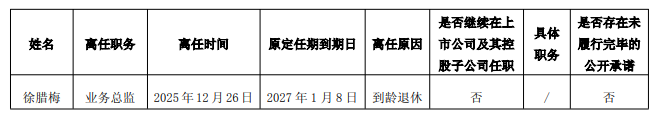 上证报中国证券网讯(记者黄坤)12月26日,南京银行发布公告称,该行董事会收到业务总监徐腊梅提交的书面辞呈,徐腊梅因到龄退休原因请求辞去该行业务总监职务。