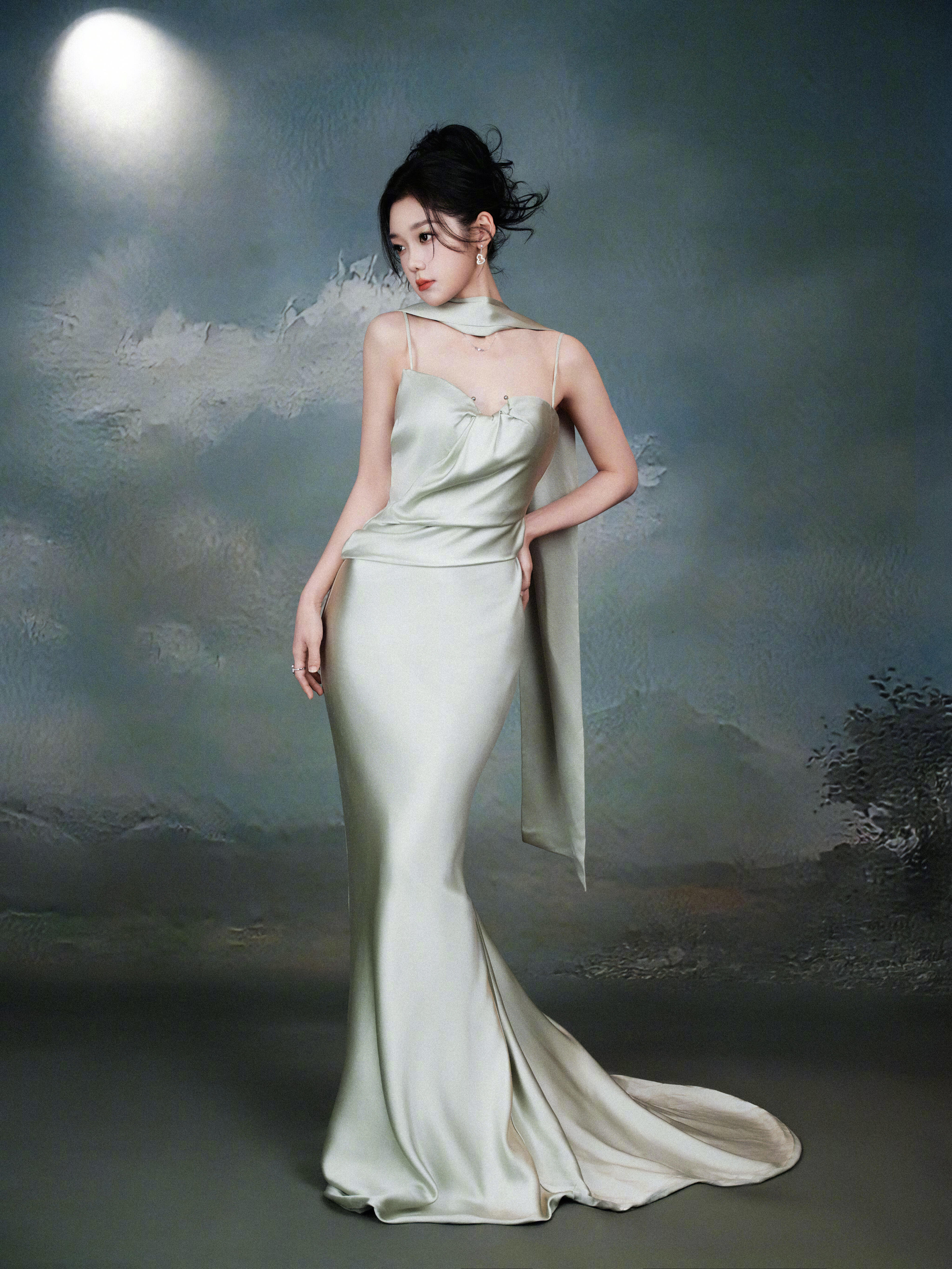 希林娜依高温婉灵动大小姐希林娜依·高今日活动Look,出席焕新非遗盛典造型图集,身着一袭SHINE MODA缎面吊带露背礼服搭配盘发造型,佩戴Qeelin麒麟珠宝,温婉灵动的大小姐一枚