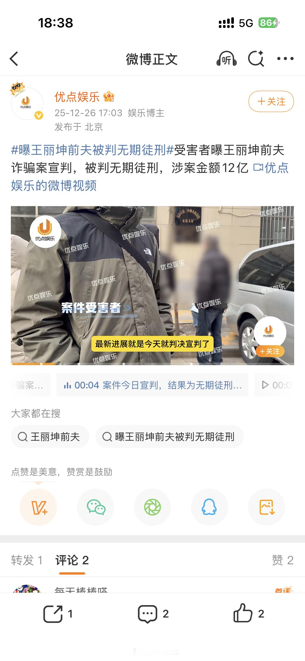 王丽坤前夫被判无期了,之前受害者联系狗仔说这个事,王丽坤工作室说王丽坤遵纪守法,没有违法被抓,中间还要自己的朋友出来辟谣过一次,说自己名下就一套房子,一辆代步车