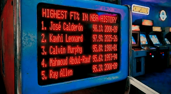 2.科怀-伦纳德——97.9%—2025-26赛季