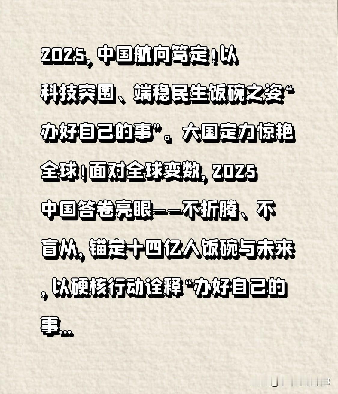 惊叹!2025,中国航向明确!以科技突围、端稳民生饭碗之势“办好自己的事”。 大