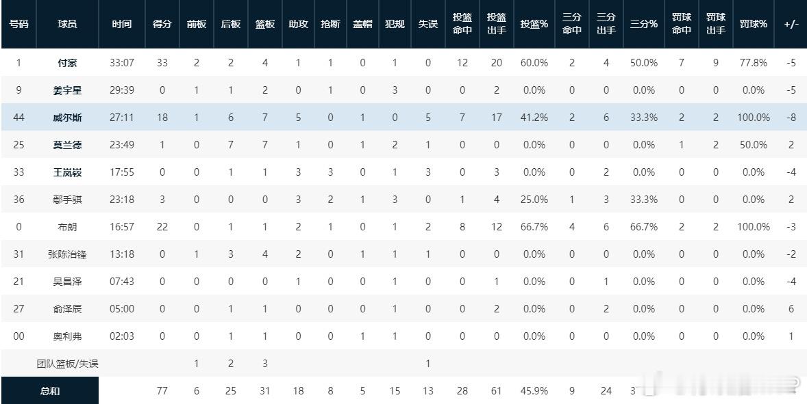 随着朱松玮投中准绝杀三分、廖三宁完成制胜抢断,辽篮客场输给了四连败的北控。尽管本场布朗和付豪的手感极佳,但辽篮进攻的整体性令人扼腕。上场11人只有5个人有得分进账,只有3人得分上双。全队77分,几乎全靠三人单打取分,付豪砍下33分、布朗22分、威尔斯18分。这三位合计得到73分,其余八位队友合计得到4分。辽篮征战客场疲惫感一览无余,篮板球足足输了16个之多,被北控抢走20个前场篮板。今晚布朗末节狂飙,投篮神准,12投8中砍下22分,末节几乎凭借一己之力连续给辽篮续命。尽管手感滚烫,可惜他全场只获得了的16分57秒的出场时间。如果能给予其更多出场时间,也许辽篮今晚就能从客场全身而退。北控男篮战胜辽宁男篮