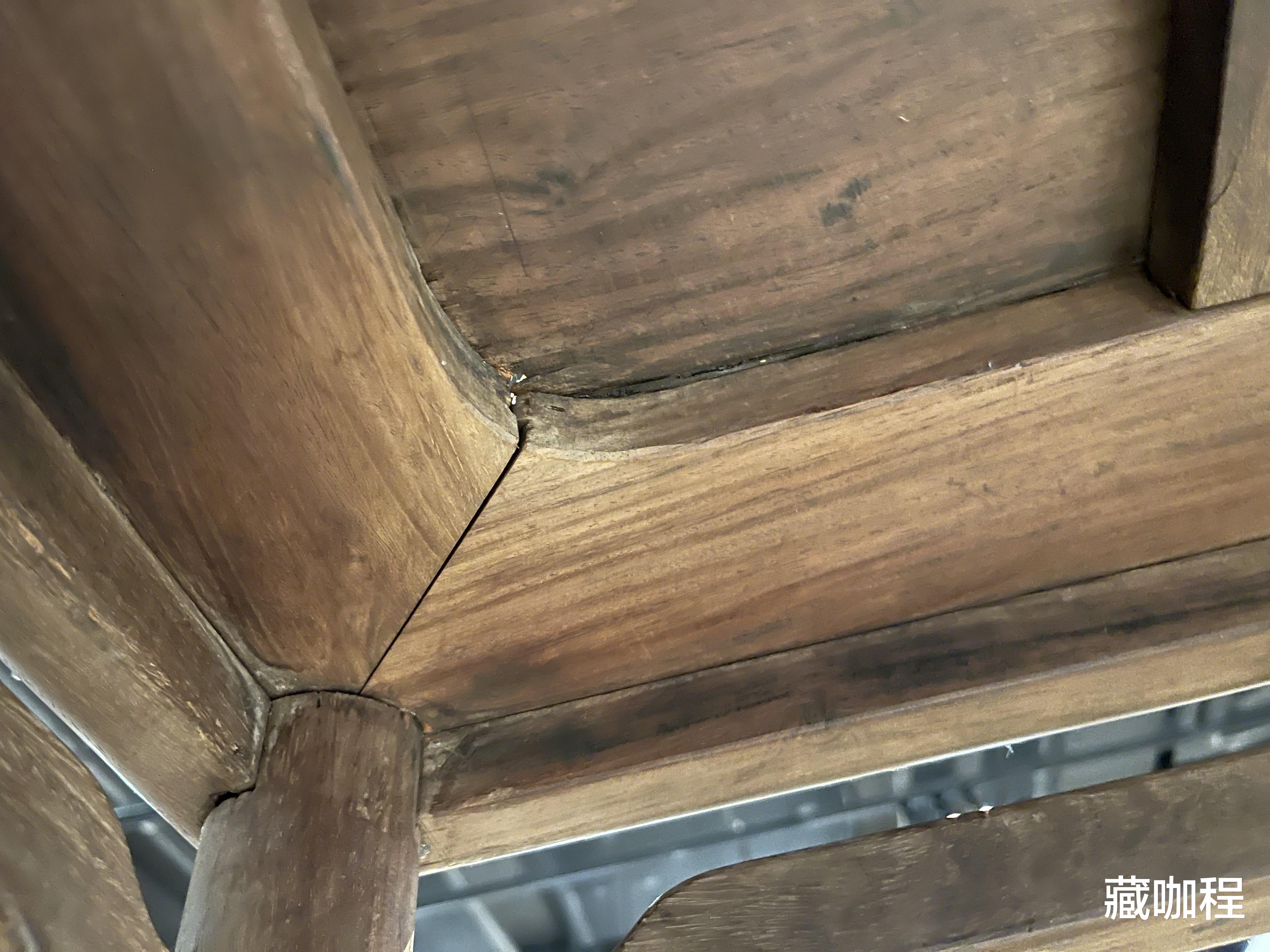 然而,桌子底部并不显得老旧,既不披麻也无挂灰,干干净净木纹清楚,看上去甚至比表面还要整洁。