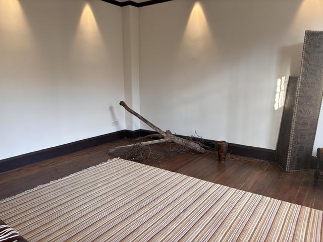 五原路262弄2号,“梧桐区”的一间老洋房里,粗粝的木头、风干的稻草、蜷曲的藤蔓,错落有致地摆放着,吸引不少观众前去“打卡”。这里名为“间奏空间”,这场貌似粗糙的展览,名为“鲸歌”,呈现了上海远郊金山地区的民艺、民俗。据主理人凯瑟琳介绍,展厅起始处像鲸鱼骨架一样的木头,以及现场的土布、花瓶,都是从金山运过来的。“许多人对上海的印象可能是繁华都市,但上海也有乡村,有原始质朴的自然风光。这种在地文化,是我们非常感兴趣,并且希望带到市中心的。”