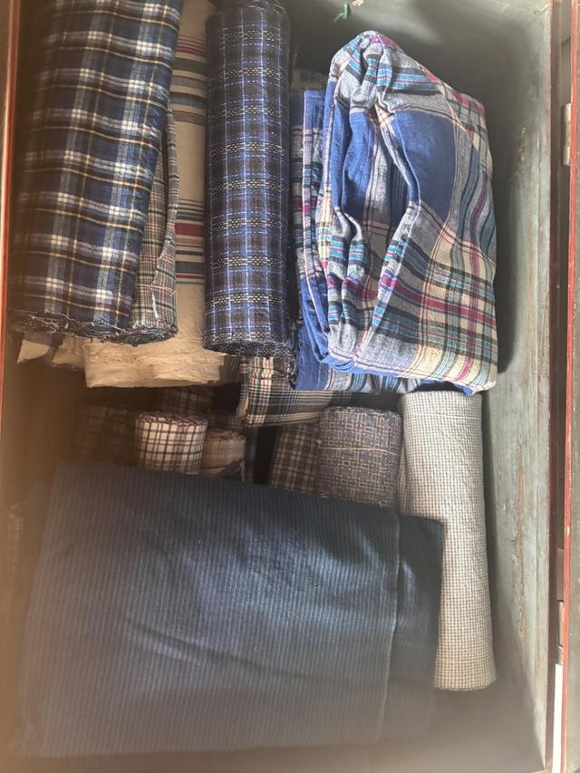 林莉把这些旧木板搬回她的“藏宝屋”。记者看到,储藏室里,稻草叠成四四方方的砖,旧木箱子里堆满老人手织的土布,旁边放着从前纺布的工具,尺寸不一的手绘木制花瓶堆在角落,床上则是一叠色彩浓烈、笔触稚拙的农民画。林莉展开其中一幅,“这是金山农民画家陈木云的作品,他已经去世了。”那些木制花瓶,正是出自陈木云之手。“陈木云后半生痴迷木工,他经常用捡来的枯木创作,磨素胚、调漆色,把传统陶瓷的纹理和木器的质朴结合起来。”