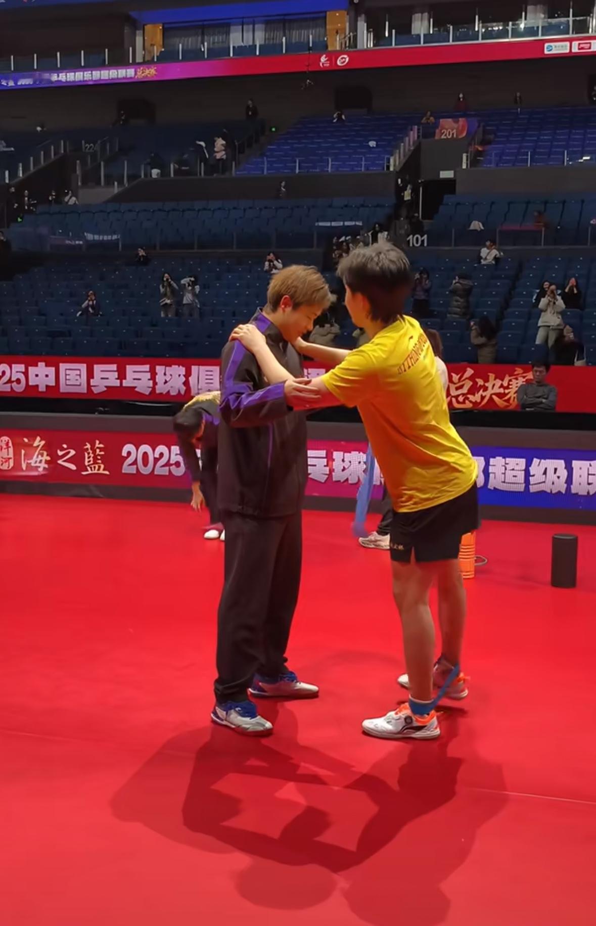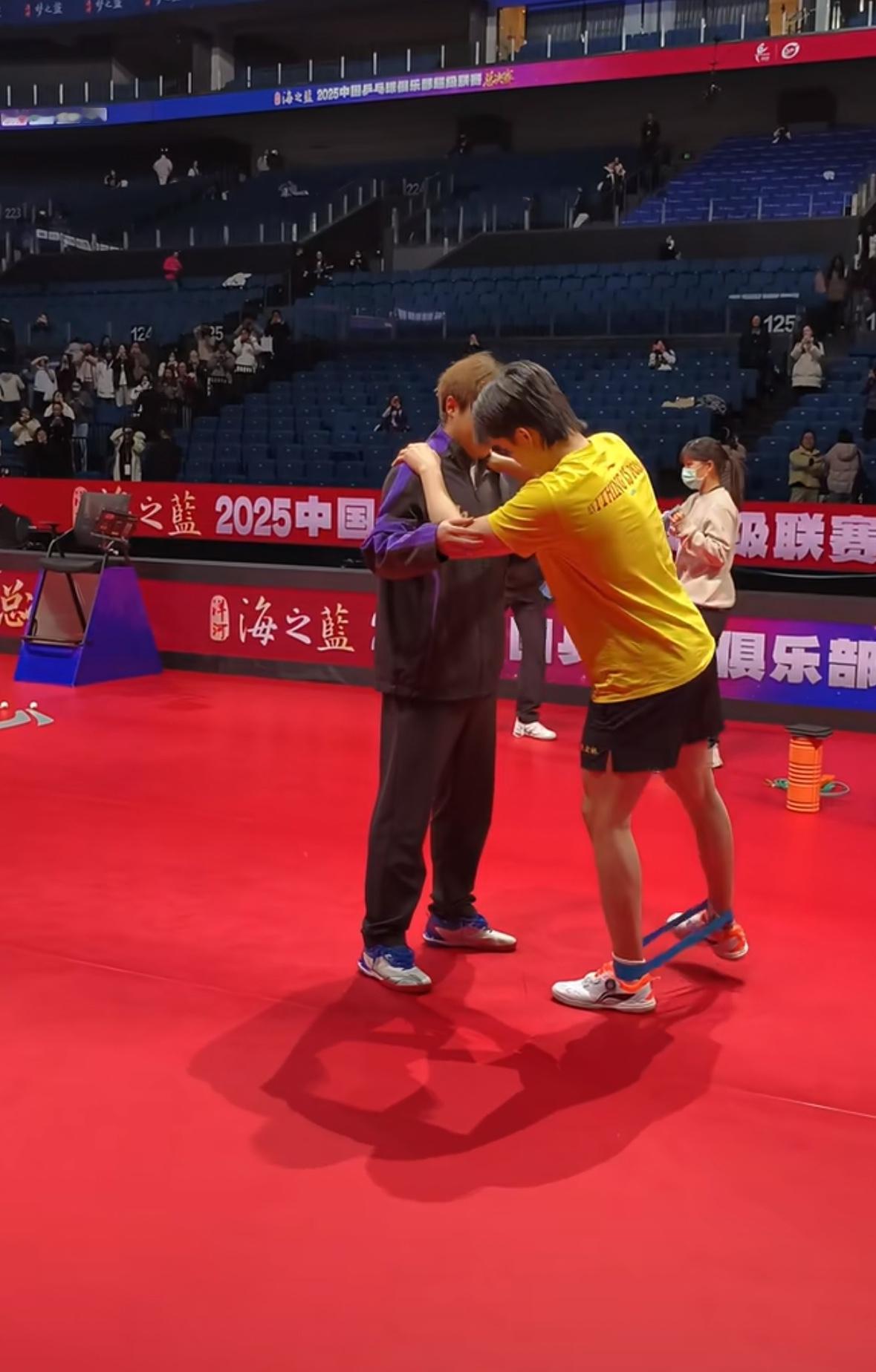 王楚钦化身托尼老师—赛前热身为曹巍整理头发 众所周知,王楚钦与曹巍是 从小一起长大的朋友, 两个人的关系非同一般, 共同效力山东魏桥, 山东魏桥VS黄石基地的决赛前, 曹巍帮助王楚钦赛前热身, 王楚钦帮助曹巍整理头发, 这两个好朋友好搞笑, 王楚钦今天再次打一单, 对战向鹏估计不太容易, 北京大满贯,向鹏把王楚钦 逼到决胜局…… 王楚钦在半决赛赛后说 “不想以两个退赛结束自己的2025” 圈粉无数, 王楚钦的担当,格局, 意志力都值得我们敬佩!