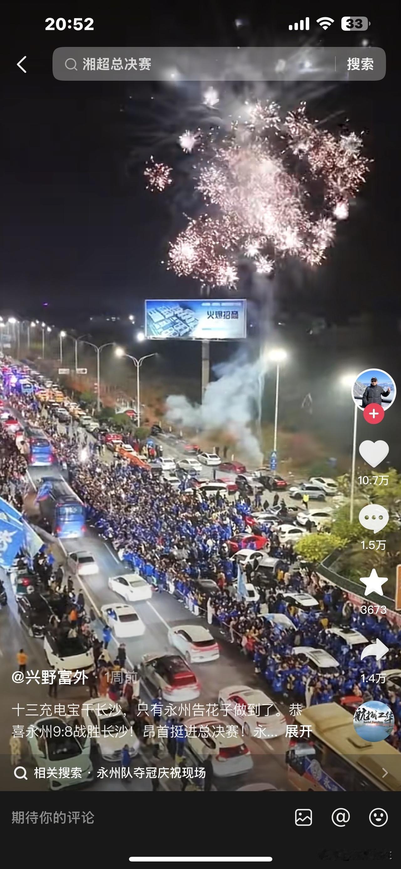 湘M,真的别太过分了! 不就是靠一点侥幸拿了个冠军,就这般大张旗鼓地庆祝?所幸这只是赢了一场区域性比赛的冠军,要是得了全国冠军,甚至是世界杯冠军,岂不是要把地球闹得鸡犬不宁? 足球运动确实不易,十分考验运动员的体力与耐力。而且足球比赛充满了偶然性和不可预测性。 12月27日晚的比赛,大家都看到,现场唯一的进球纯属意外。在双方球员混战中,常德队7号球员本想用头顶球将球顶出球门,结果球却进了自家球门,这才造就了那唯一的进球。 庆祝胜利可以理解,但如此高调、过度地庆祝就没必要了。这般过分的庆祝,好似是压抑后的宣泄! 湘超足球赛 湖南湘超足球赛 湘超常德足球队